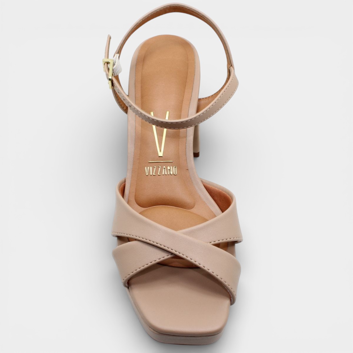 Sandália Plataforma Vizzano Salto Grosso Tiras cruzadas Feminino - Bege