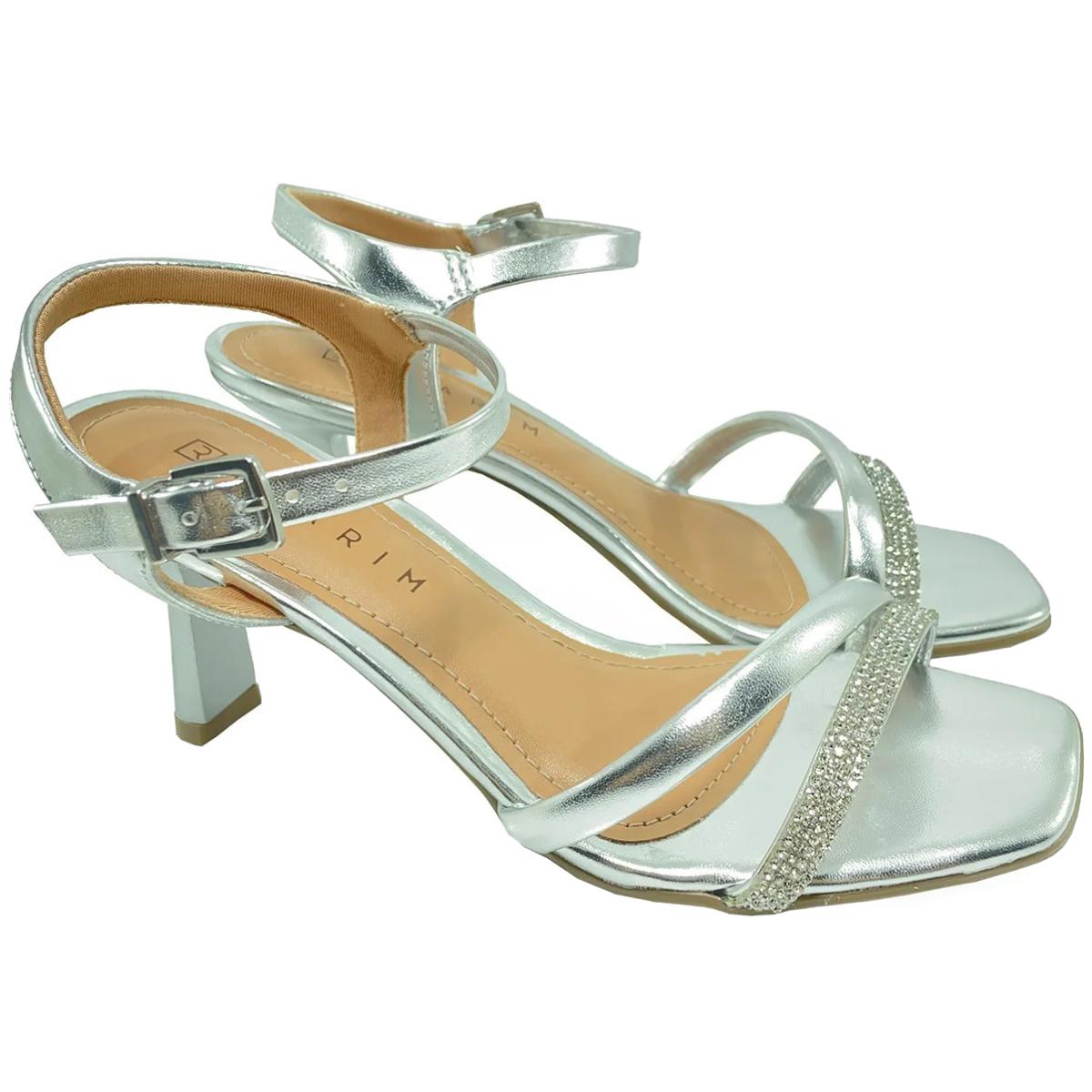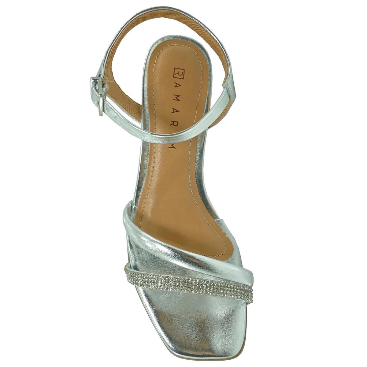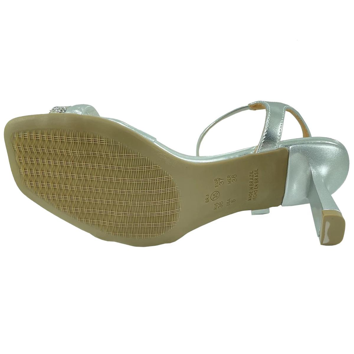 Sandália Ramarim Metalizada Strass Feminina - Prata