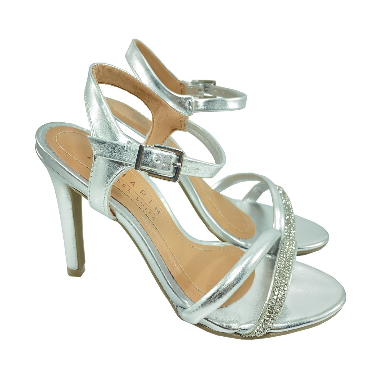 Sandália Ramarim Metalizada Strass Tiras Andressa Suíta - Prata