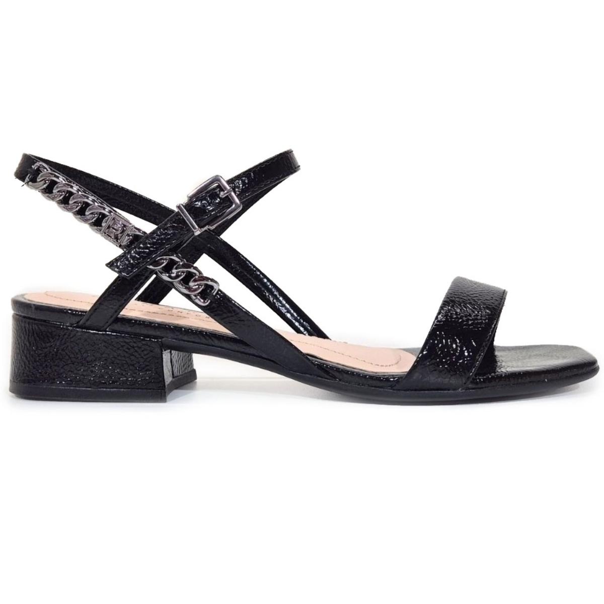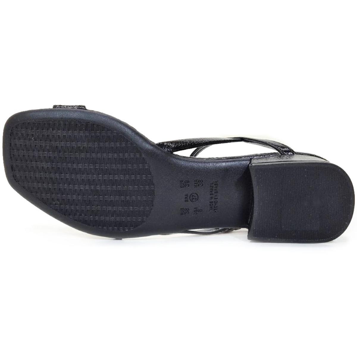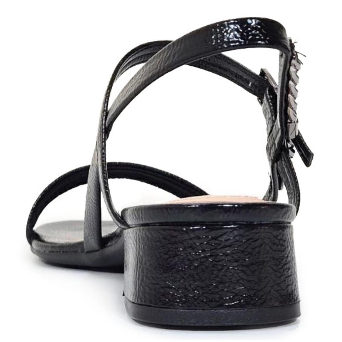 Sandália Ramarim Salto Bloco Baixo Detalhe Feminina - Preto