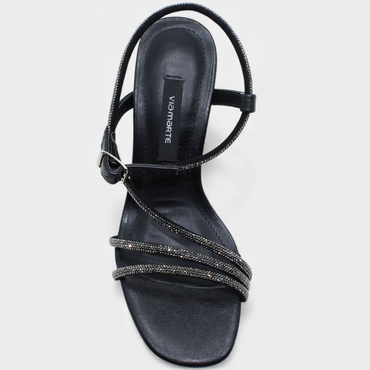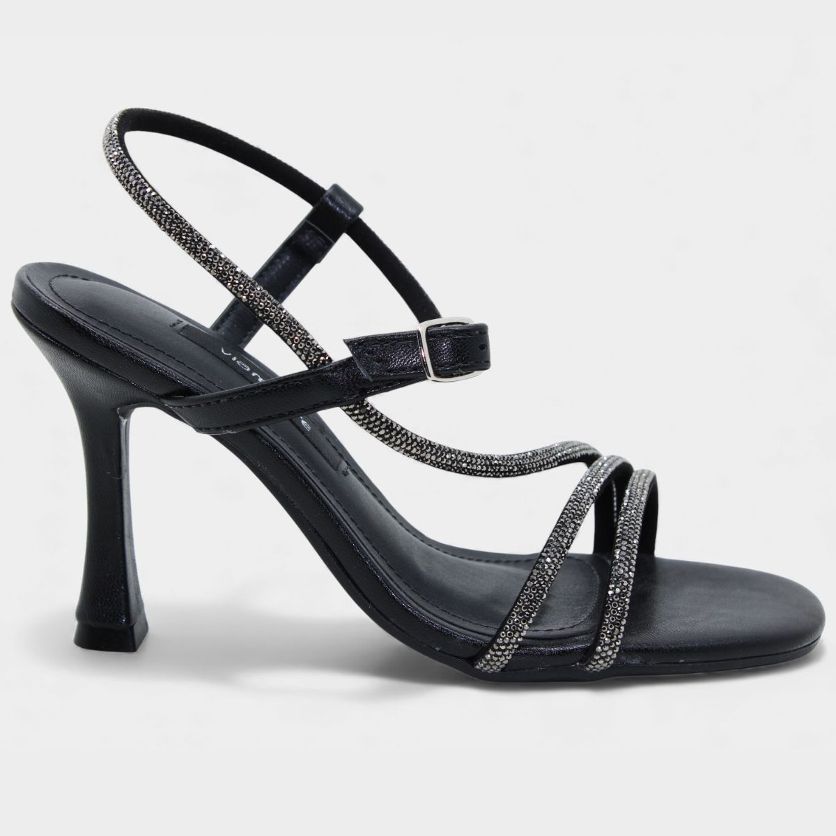 Sandália Via Marte Salto Alto Strass Feminina - Preto