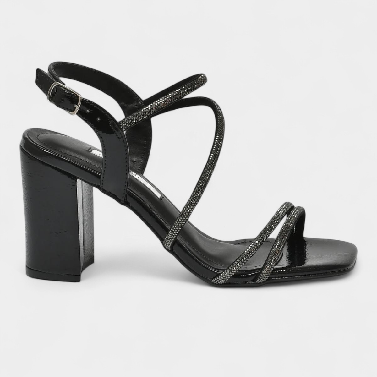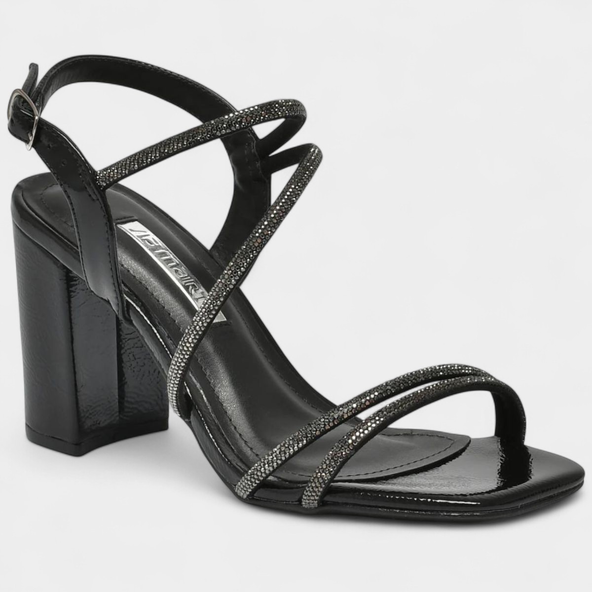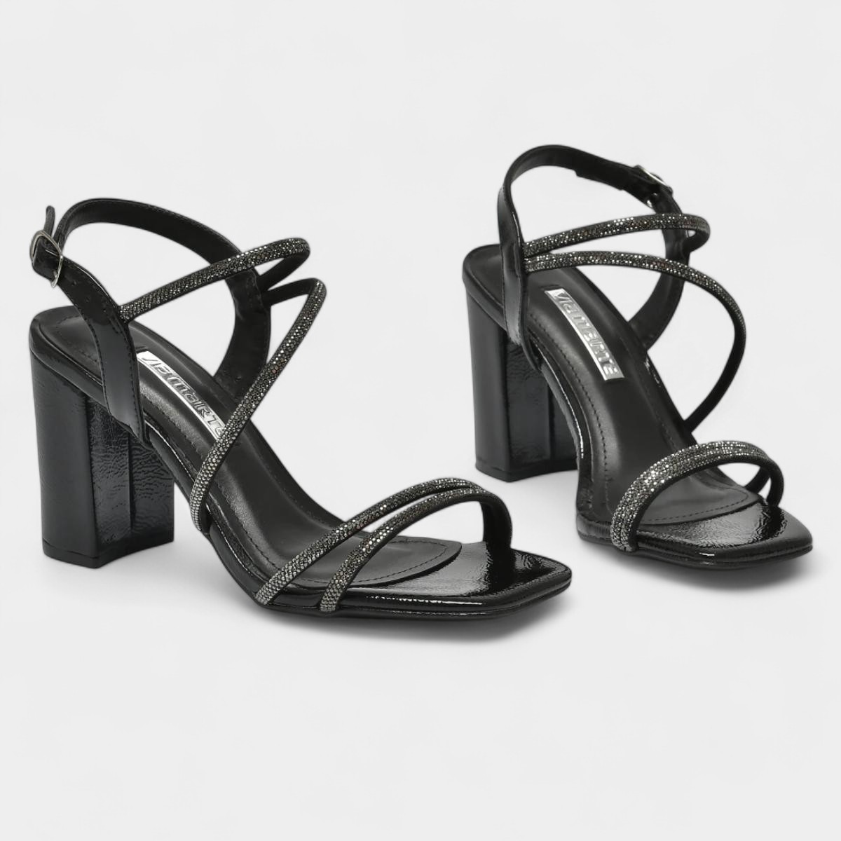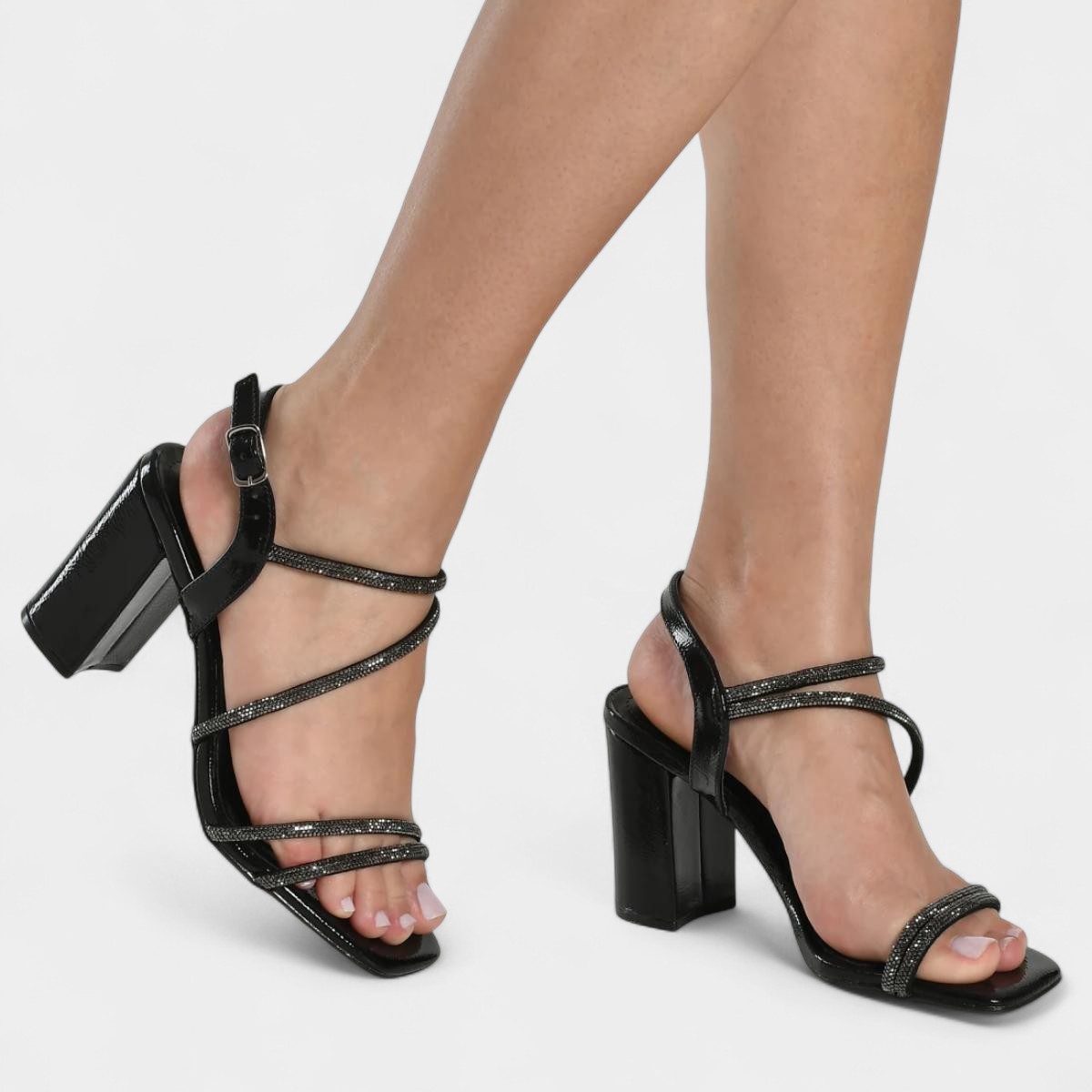 Sandália Via Marte Salto Grosso Strass Feminina - Preto
