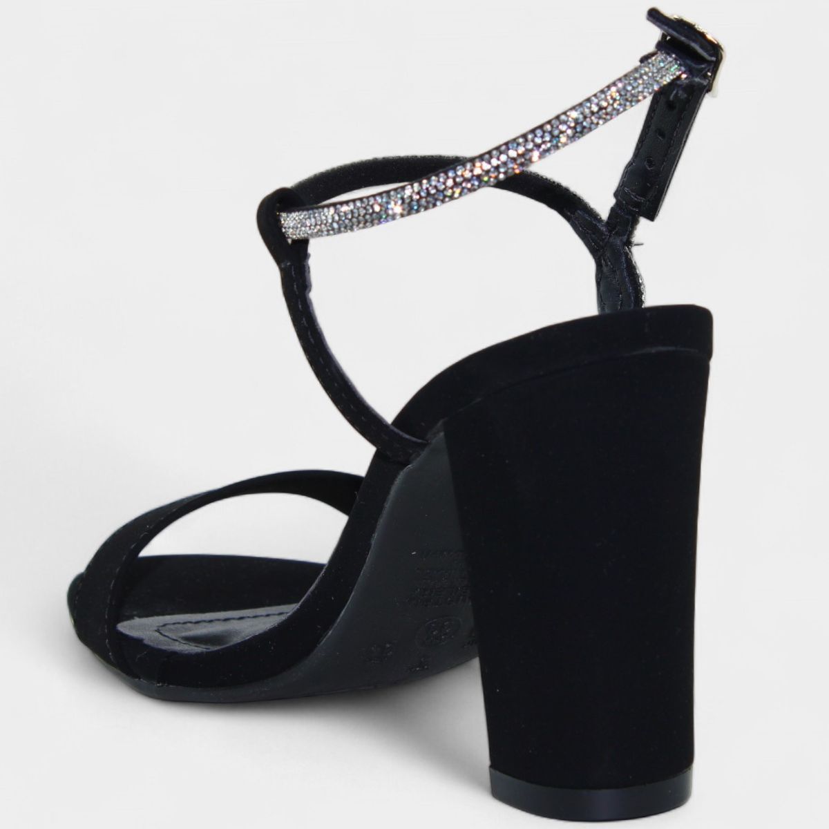 Sandália Via Marte Salto Grosso Strass Nobuck Feminina - Preto