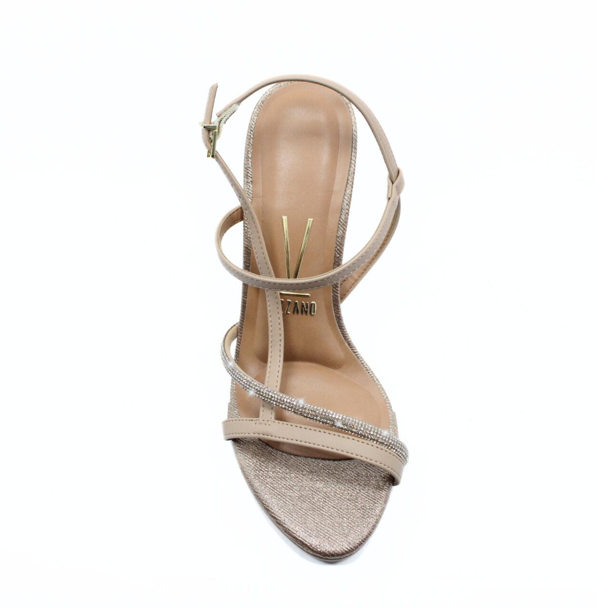 Sandália Vizzano Básica Salto Alto Tira Strass Feminina - Bege e Dourado
