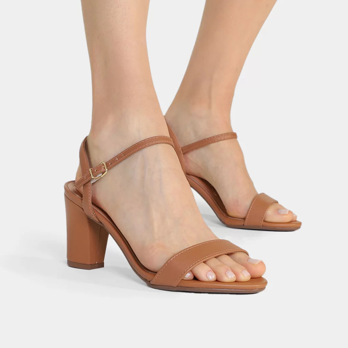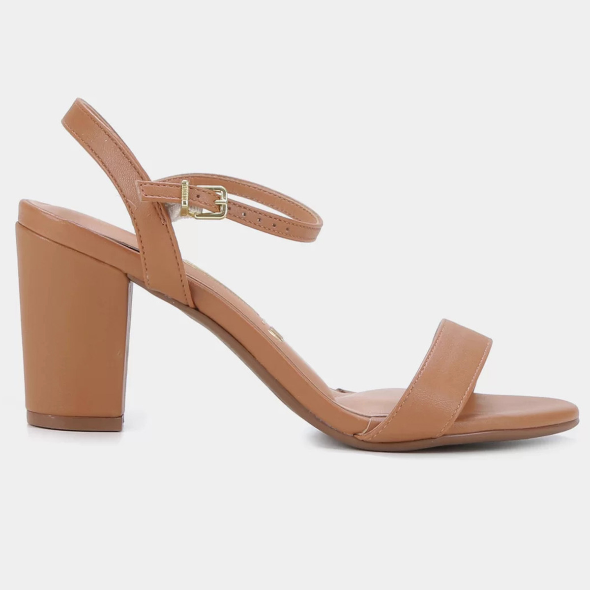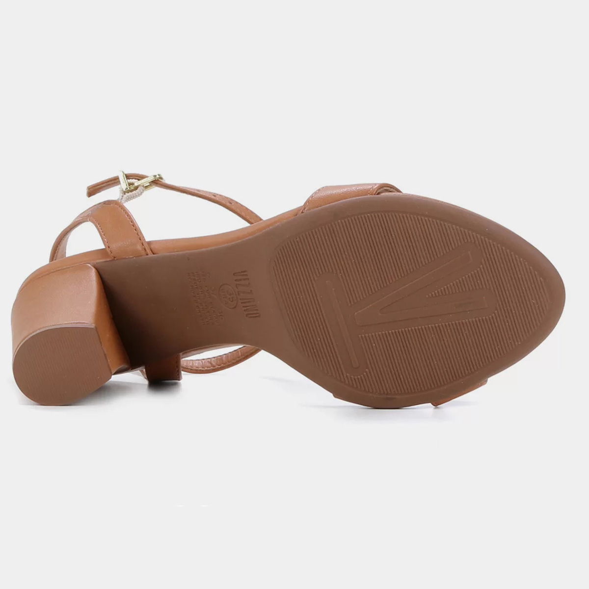 Sandália Vizzano Salto Médio Grosso Tira Feminina - Caramelo