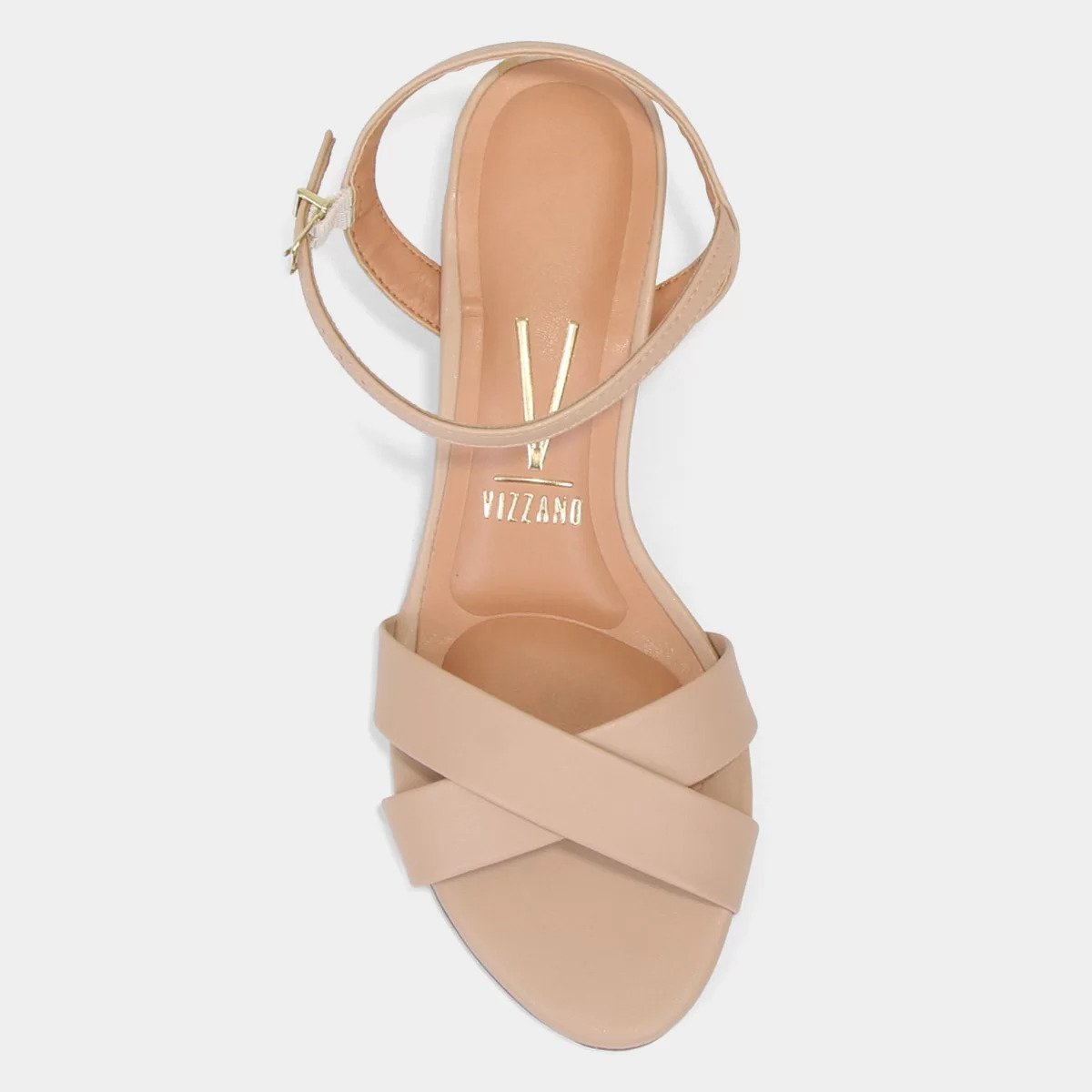 Sandália Vizzano Salto Bloco Médio Feminina - Bege