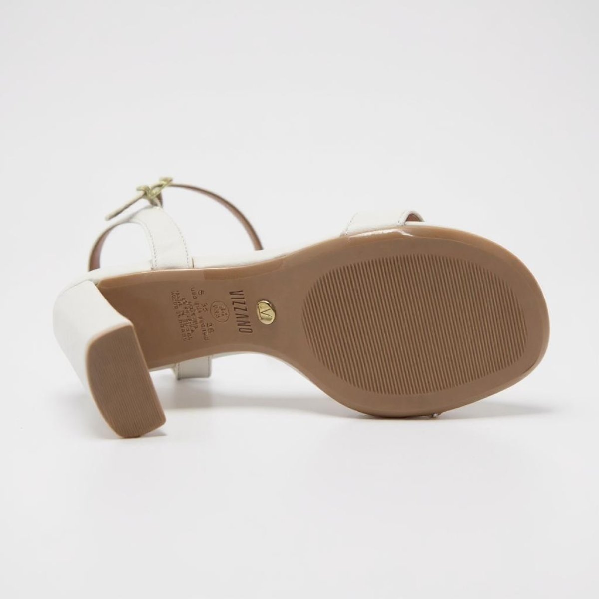 Sandália Vizzano Salto Médio Grosso Feminina - Off White