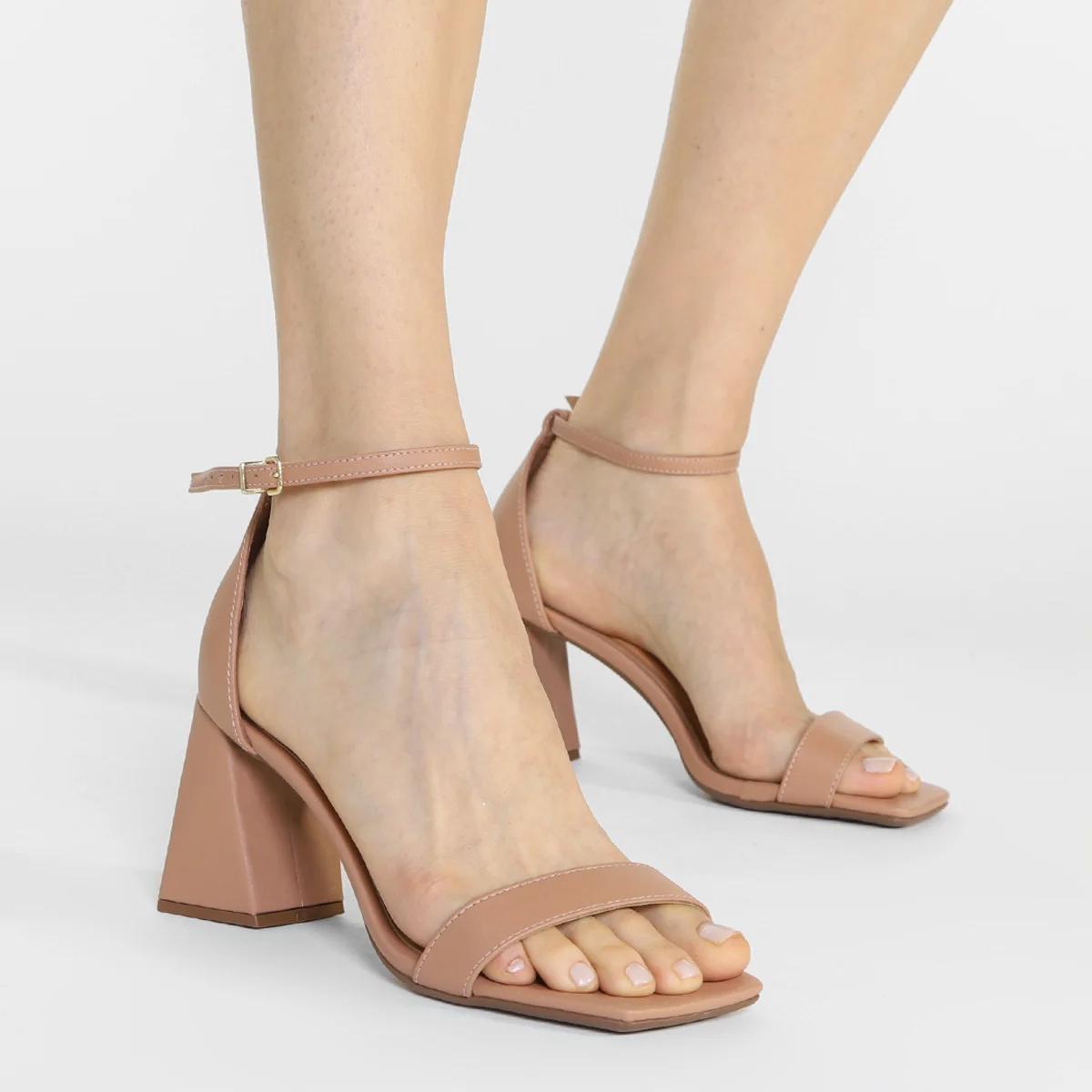 Nome:Sandália Vizzano Salto Médio Feminina - Bege