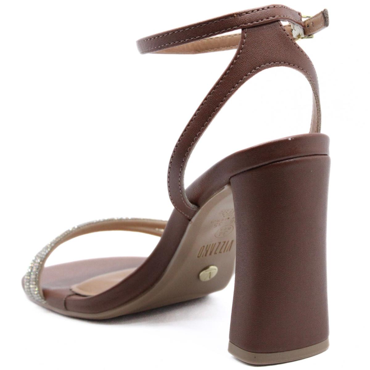 Nome:Sandália Vizzano Strass Salto Alto Grosso Feminina - Marrom Claro
