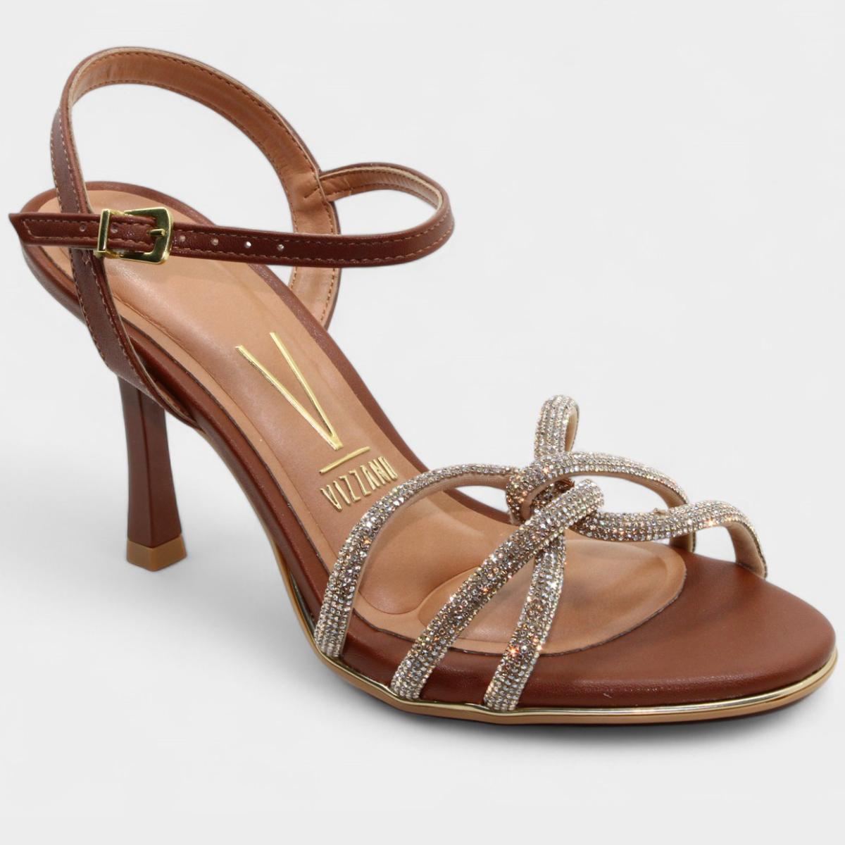 Sandália Vizzano Strass Salto Médio Feminina - Marrom