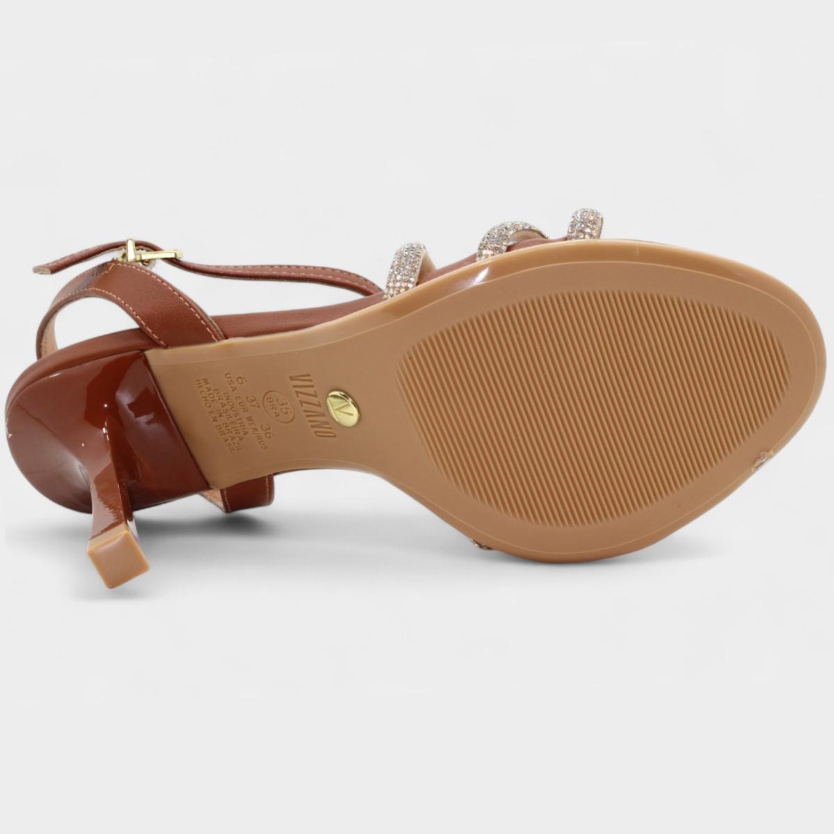 Nome:Sandália Vizzano Strass Salto Médio Feminina - Marrom