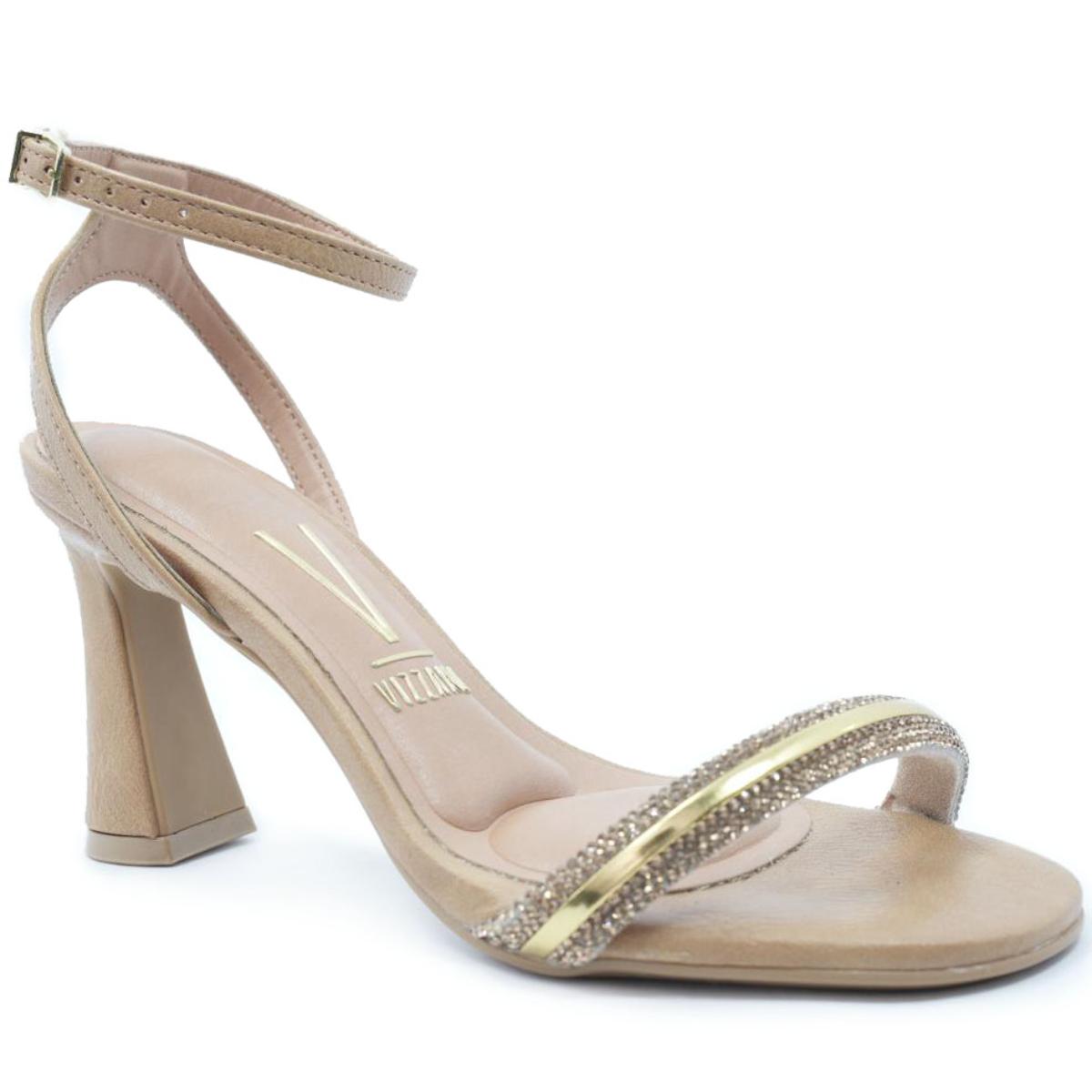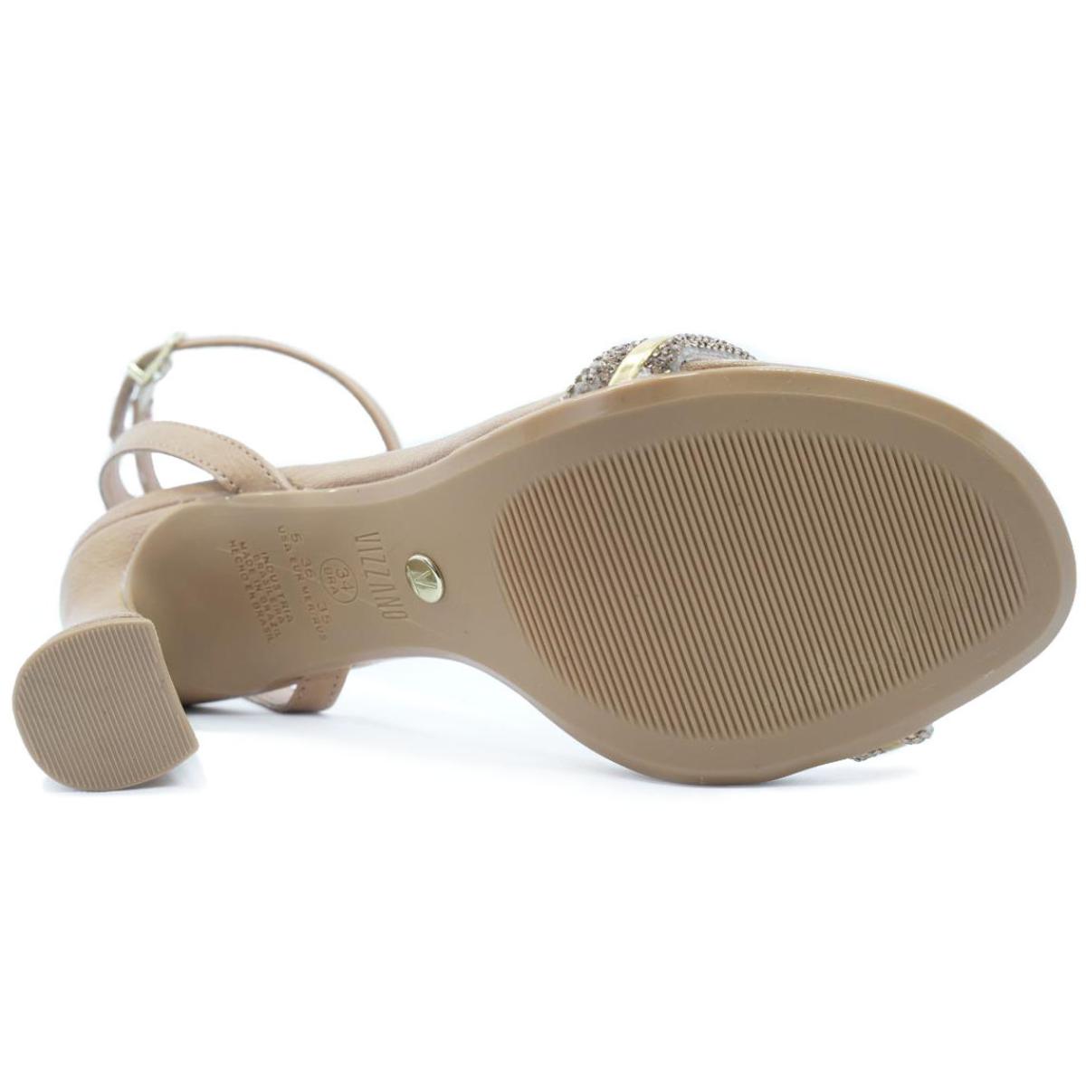 Sandália Vizzano Tira Strass Salto Médio Feminina - Bege