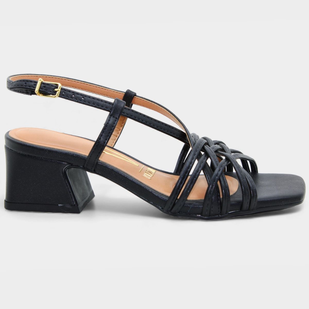 Sandália Vizzano Tiras Cruzadas Salto Baixo Bloco Feminina - Preto