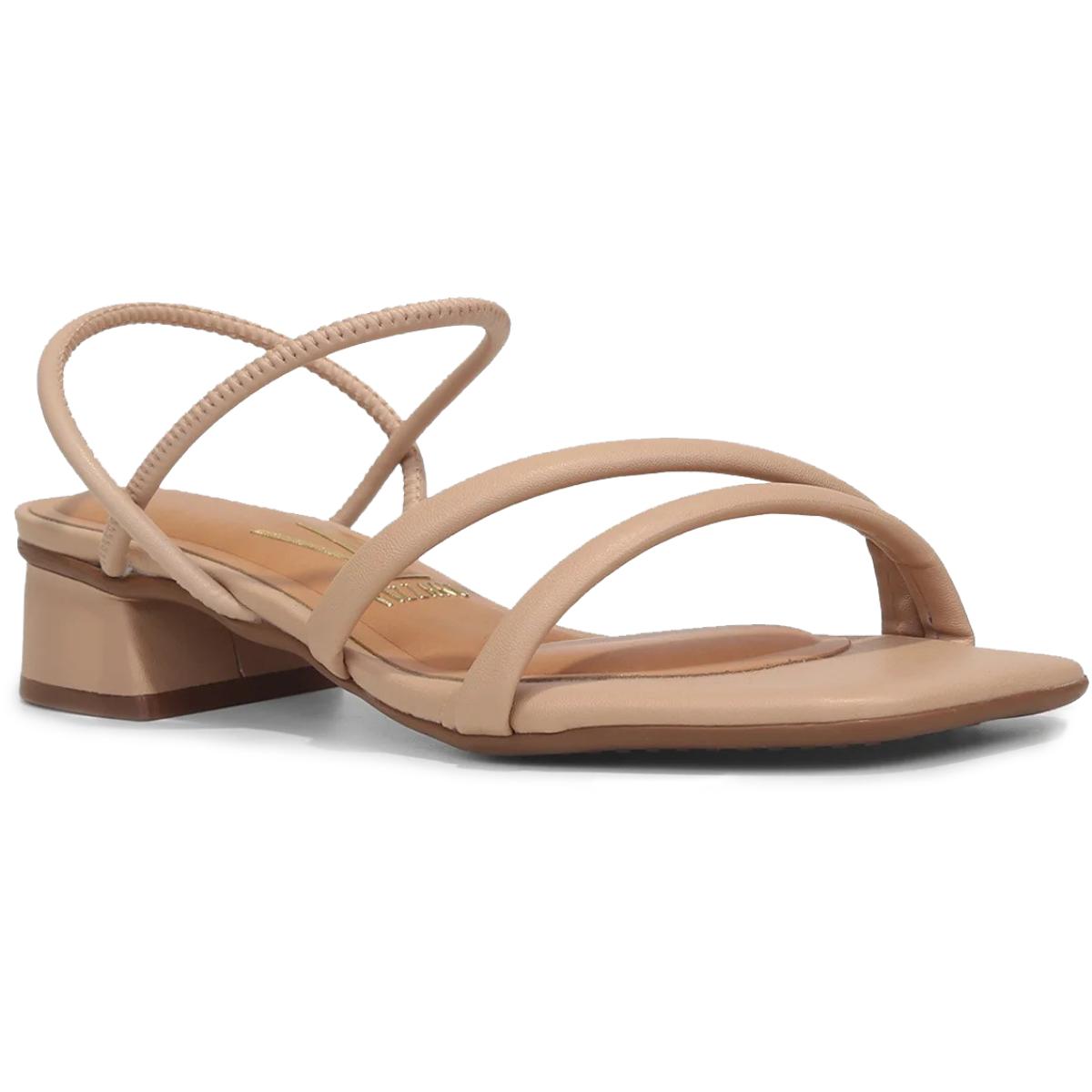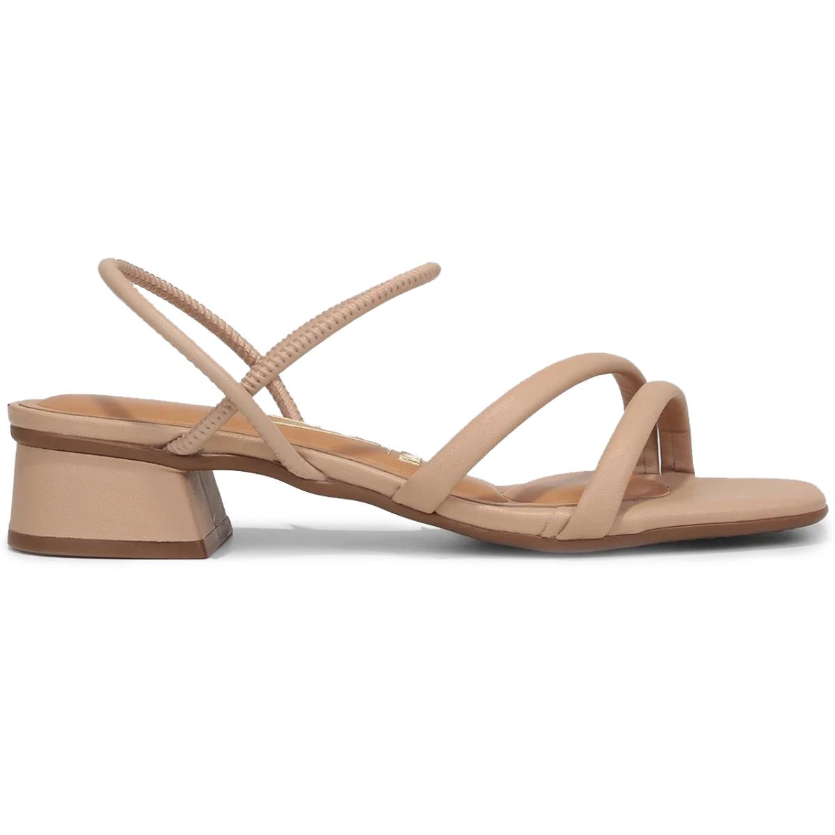 Sandália Vizzano Tiras Salto Bloco Baixo Feminina - Bege