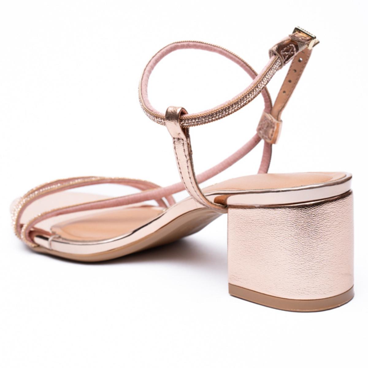 Nome:Sandália Vizzano Tiras Strass Metalizada Salto Bloco Feminina - Ouro Rosado