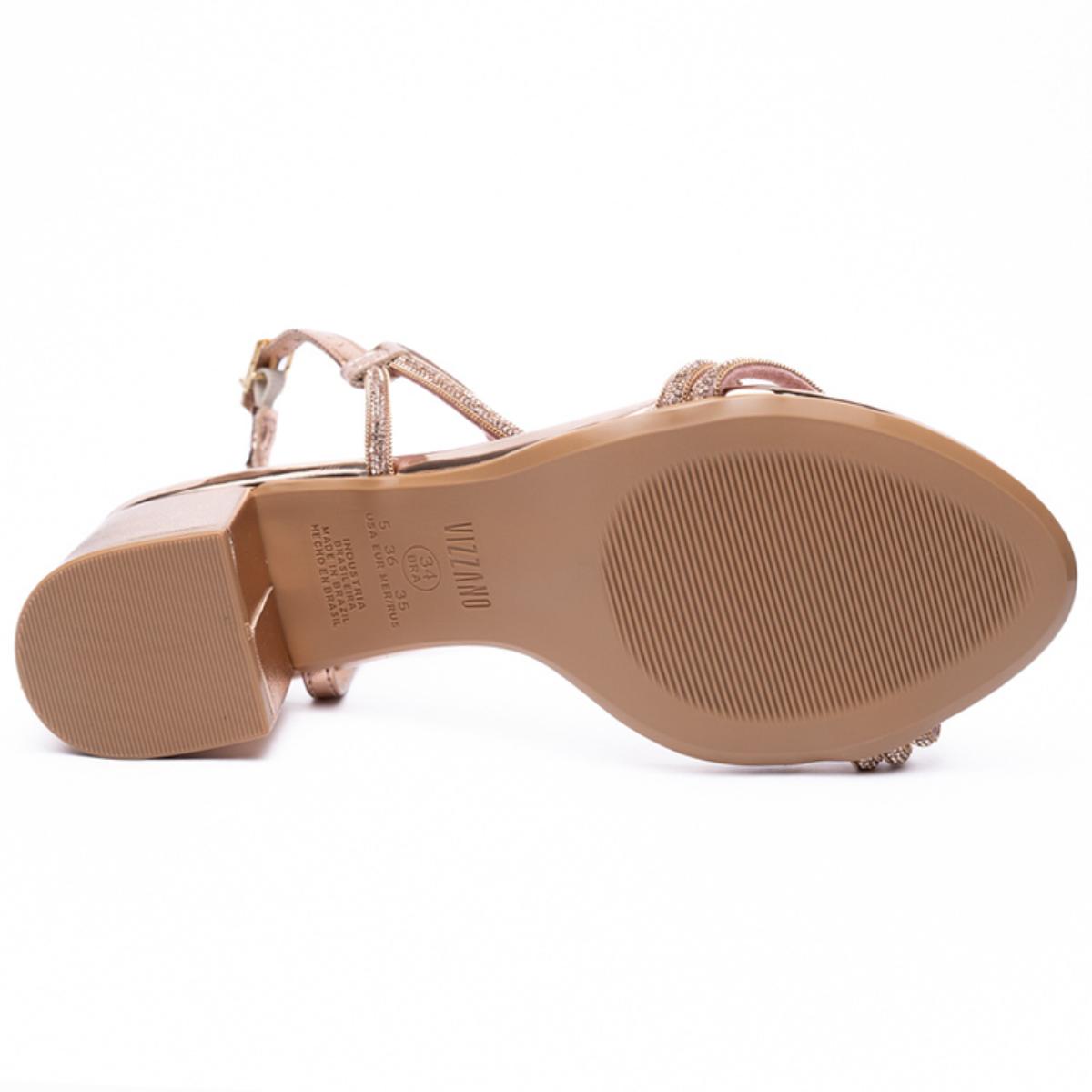 Sandália Vizzano Tiras Strass Metalizada Salto Bloco Feminina - Ouro Rosado