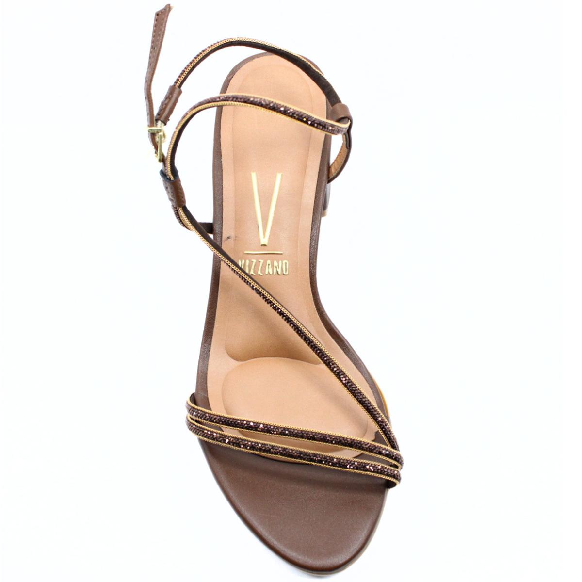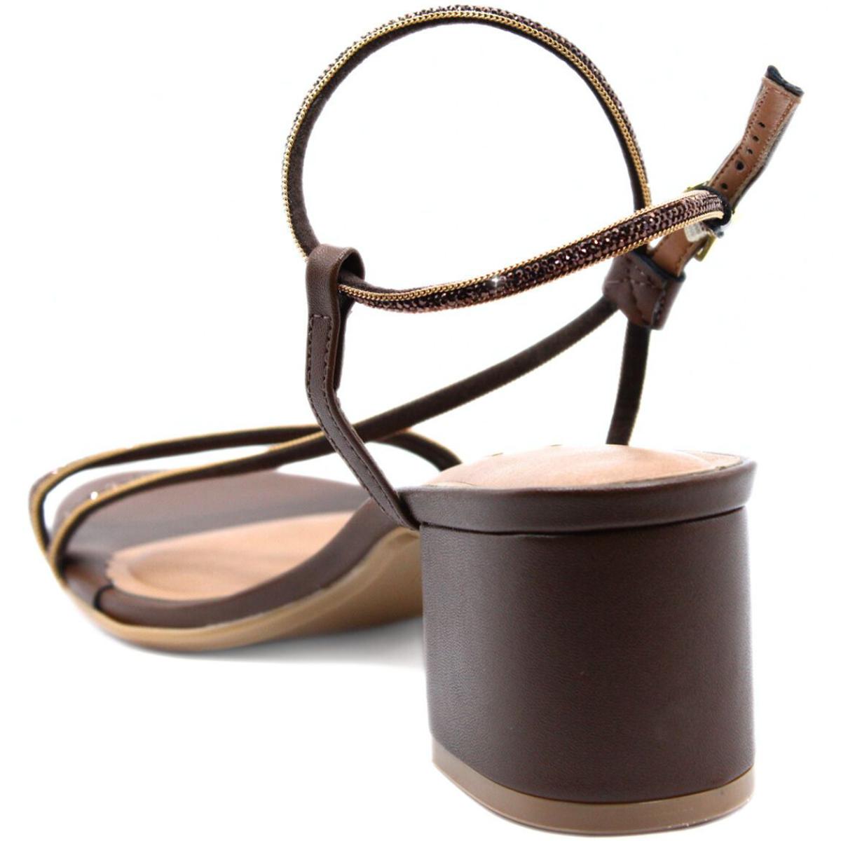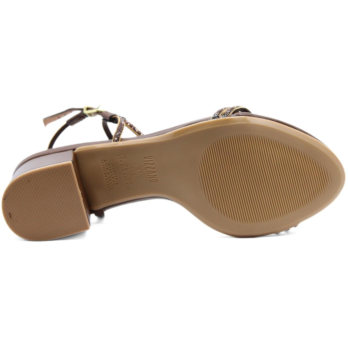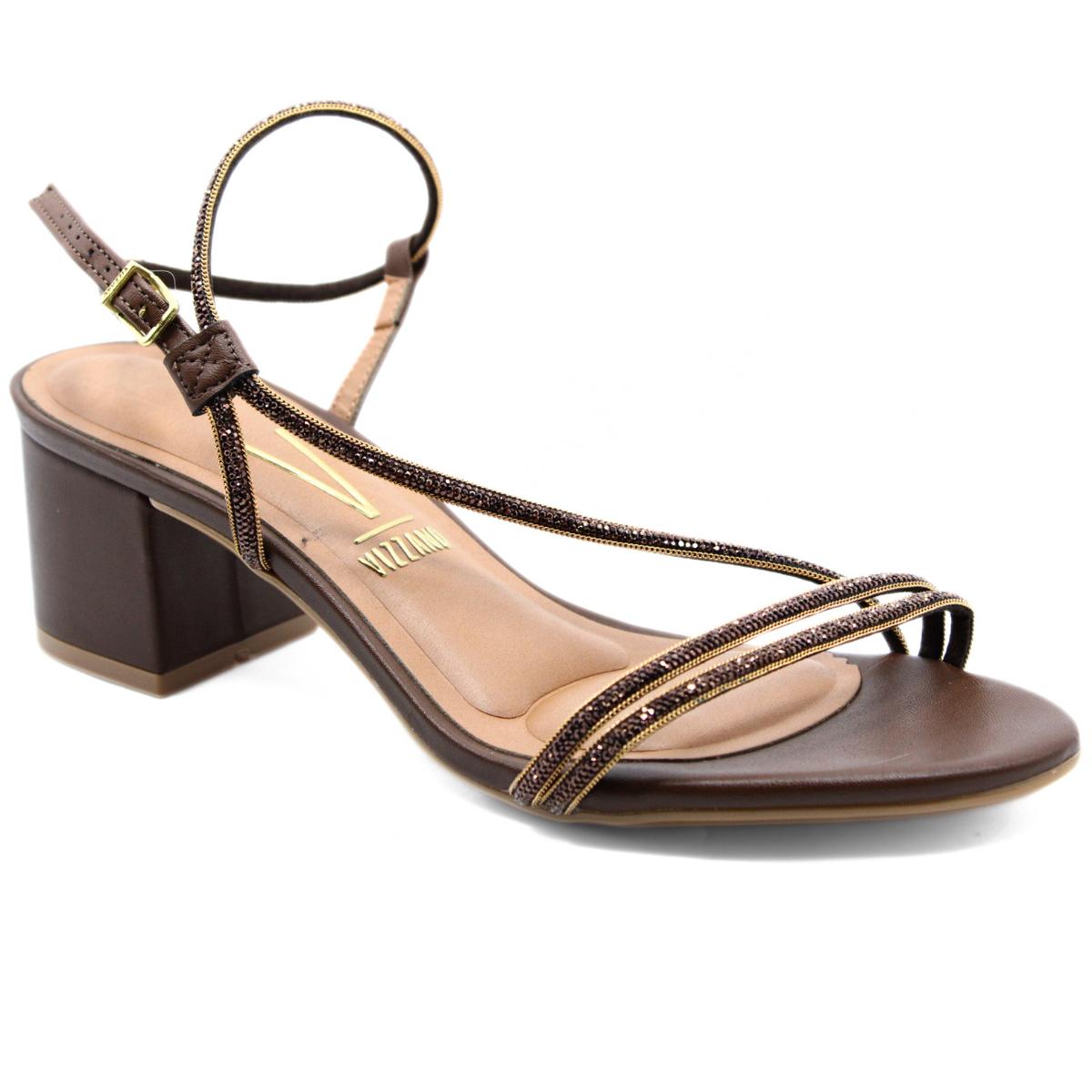 Sandália Vizzano Tiras Strass Salto Bloco Feminina - Marrom