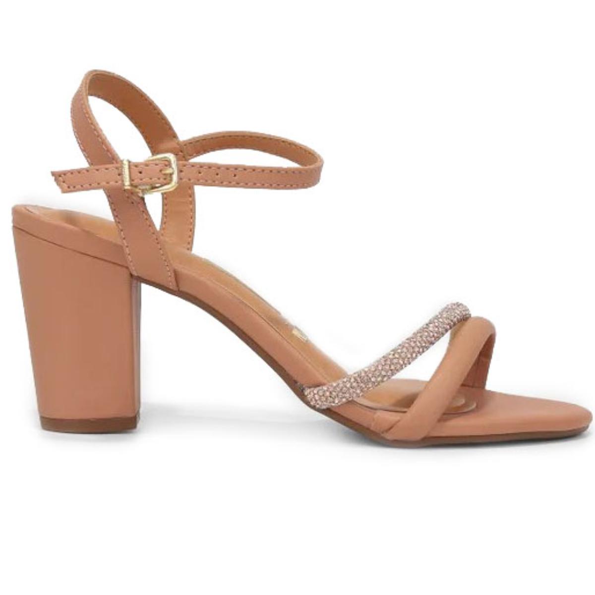 Nome:Sandália Vizzano Tiras Strass Salto Médio - Nude