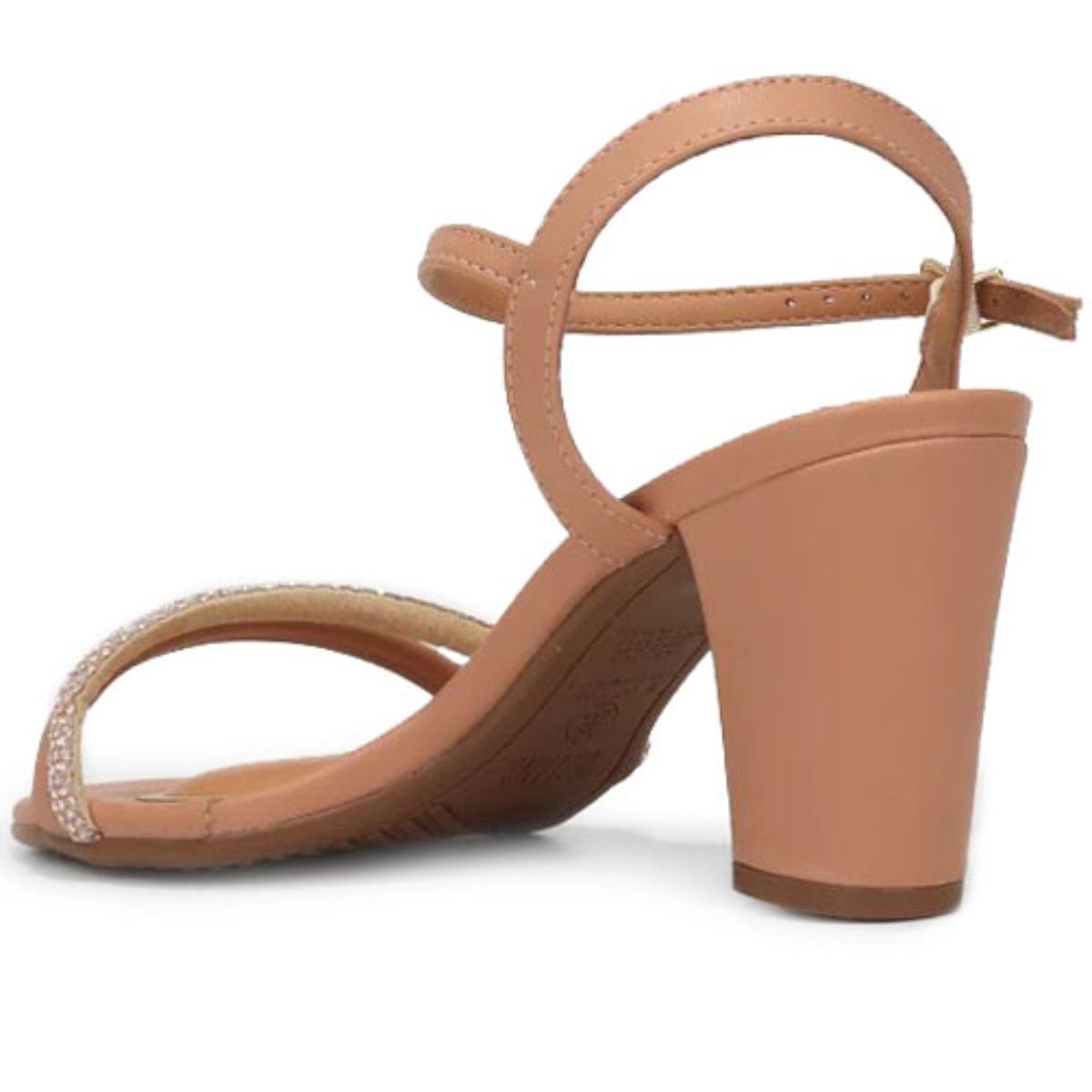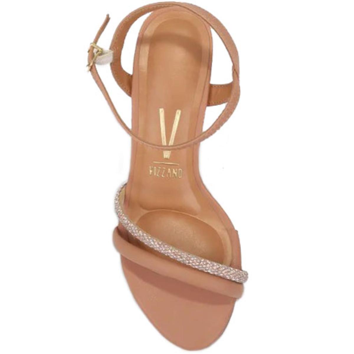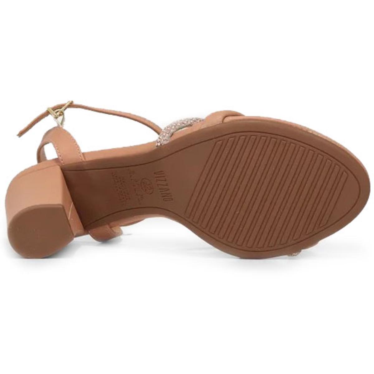 Sandália Vizzano Tiras Strass Salto Médio - Nude