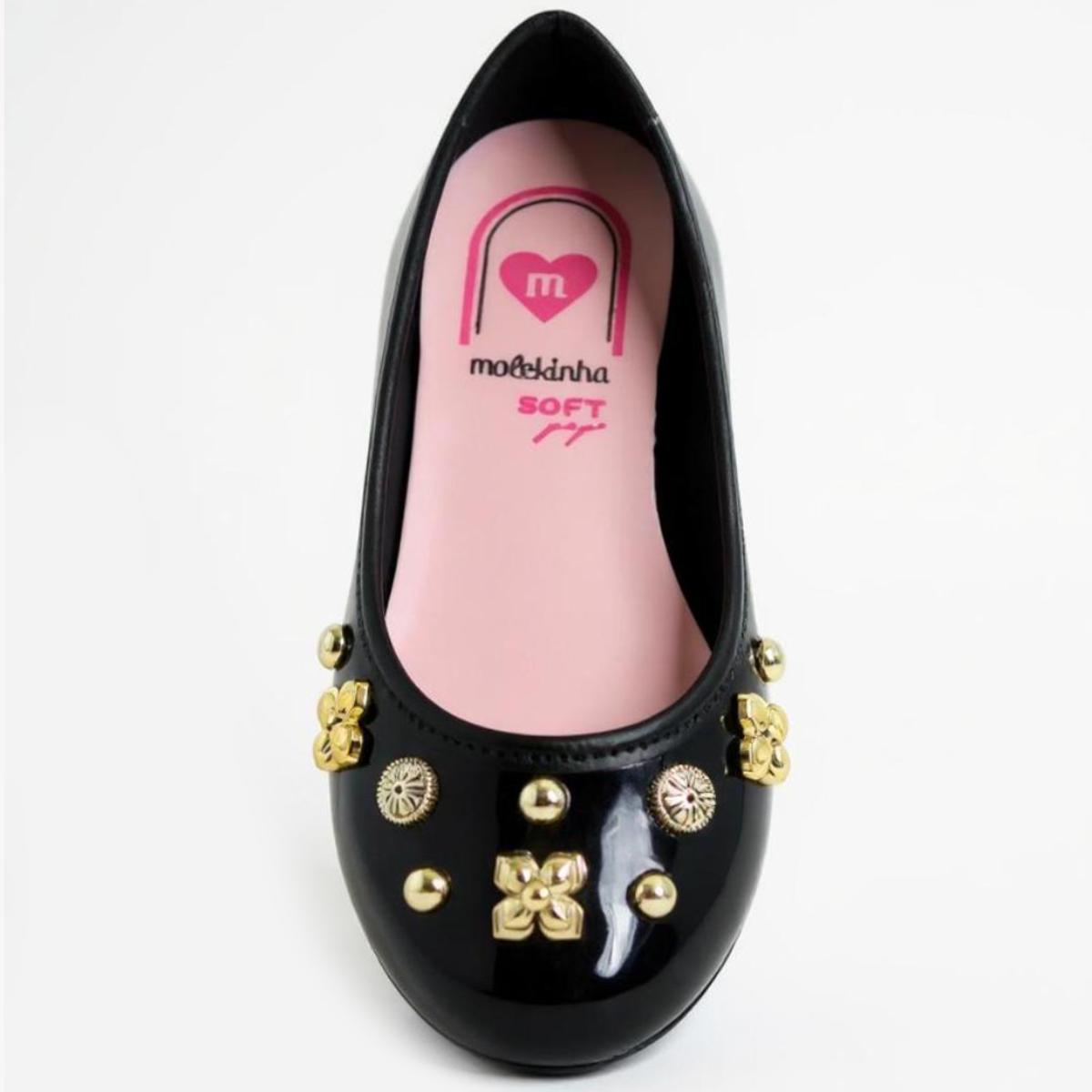 Sapatilha Infantil Molekinha Verniz Apliques - Preto