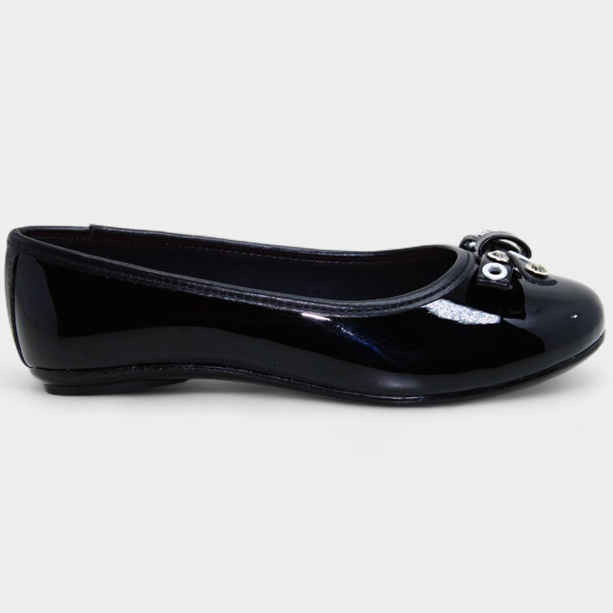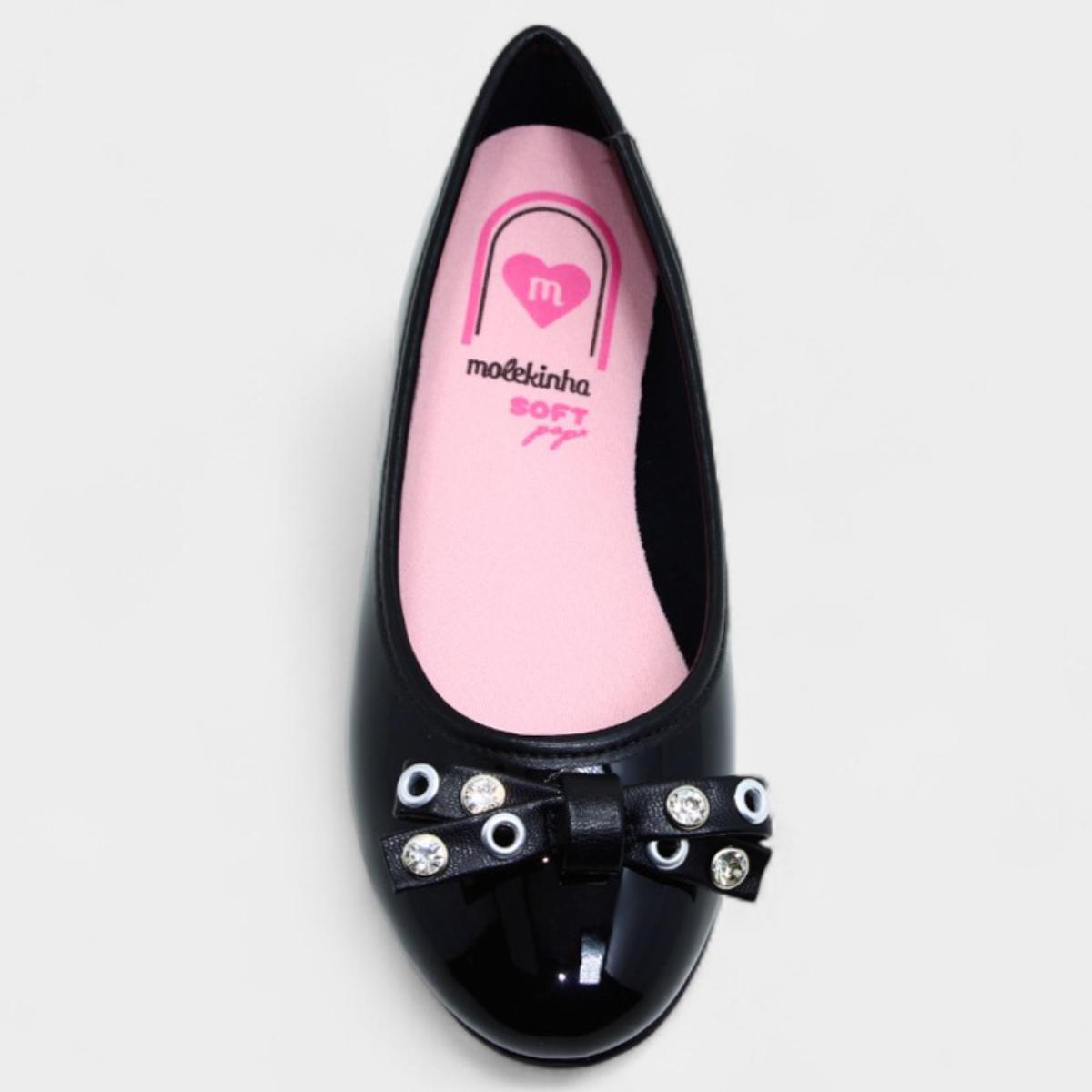 Sapatilha Infantil Molekinha Verniz Laço Strass - Preto