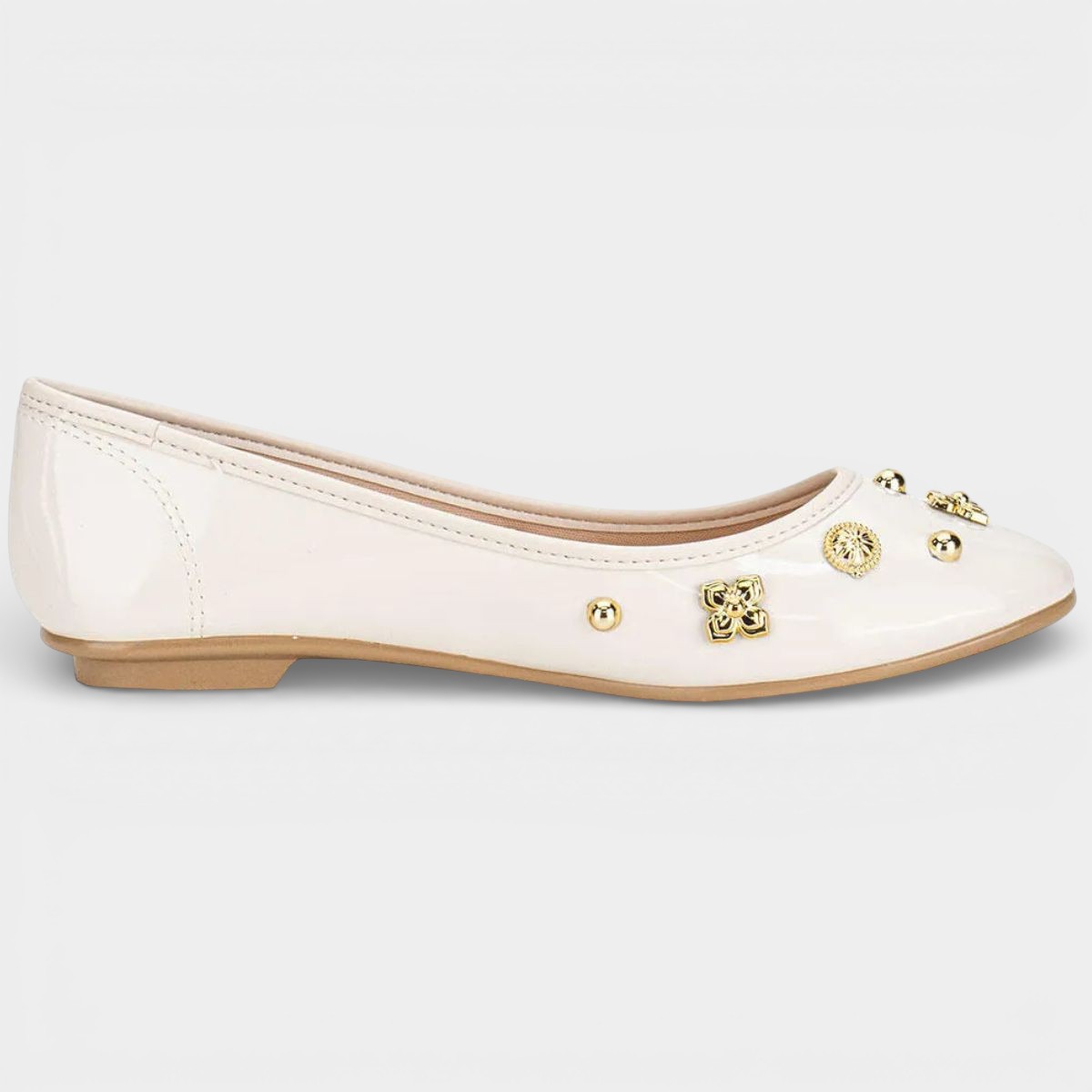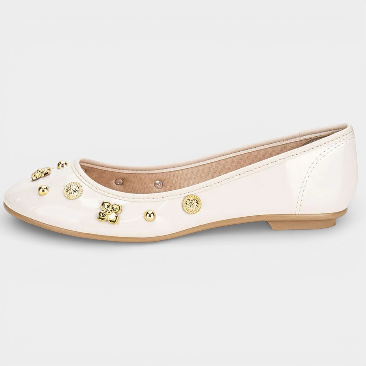 Sapatilha Moleca Bico Redondo Apliques Feminina - Off White