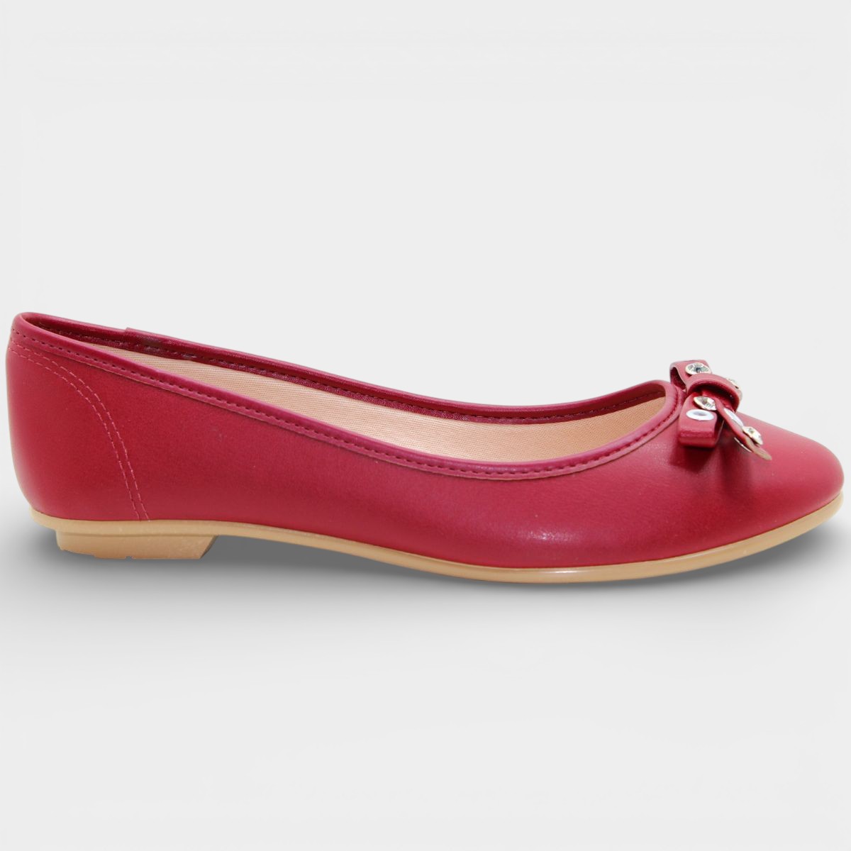 Sapatilha Moleca Bico Redondo Laço Ilhós Feminina - Vermelho