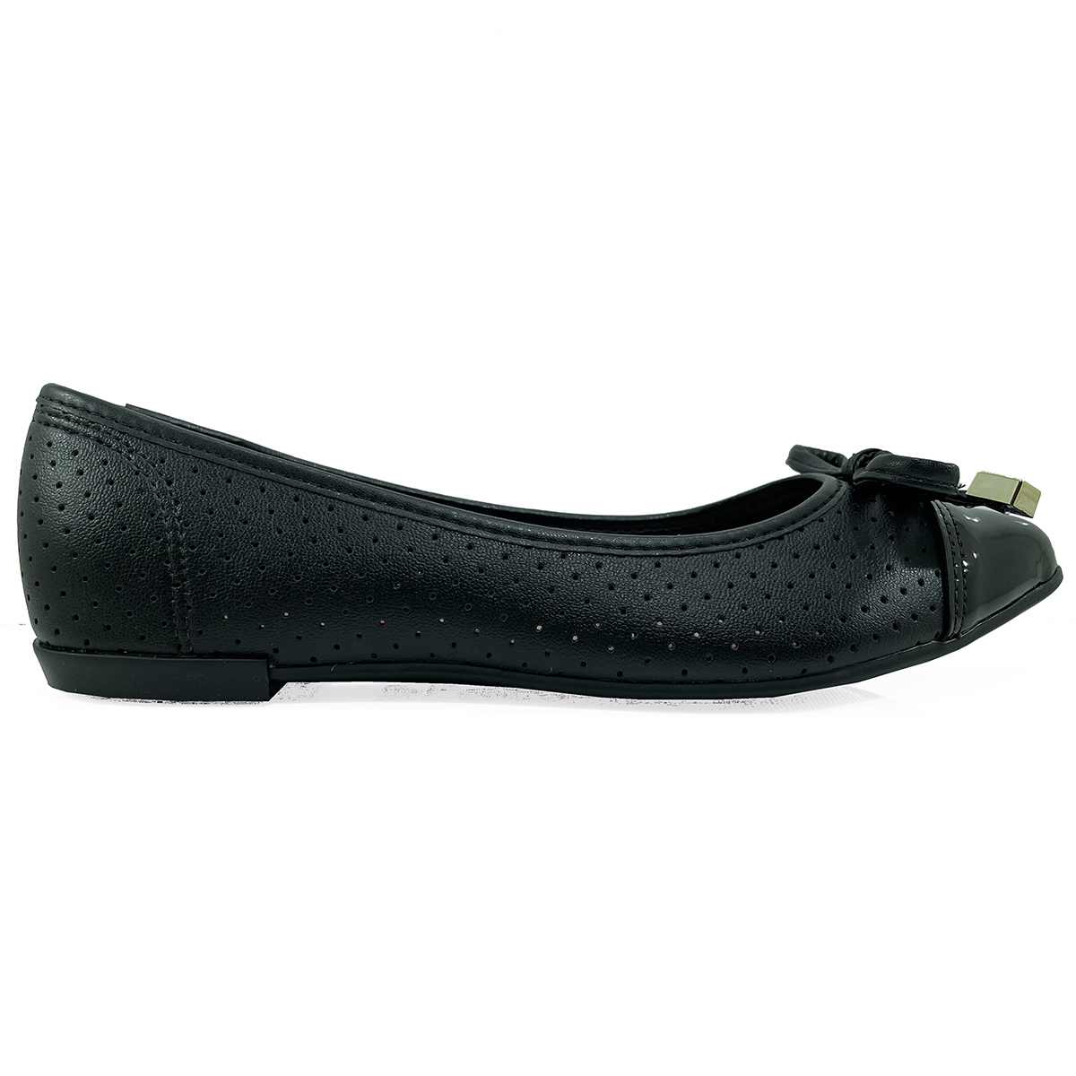 Sapatilha Moleca Laço Bico Fino Microperfuros - Preto