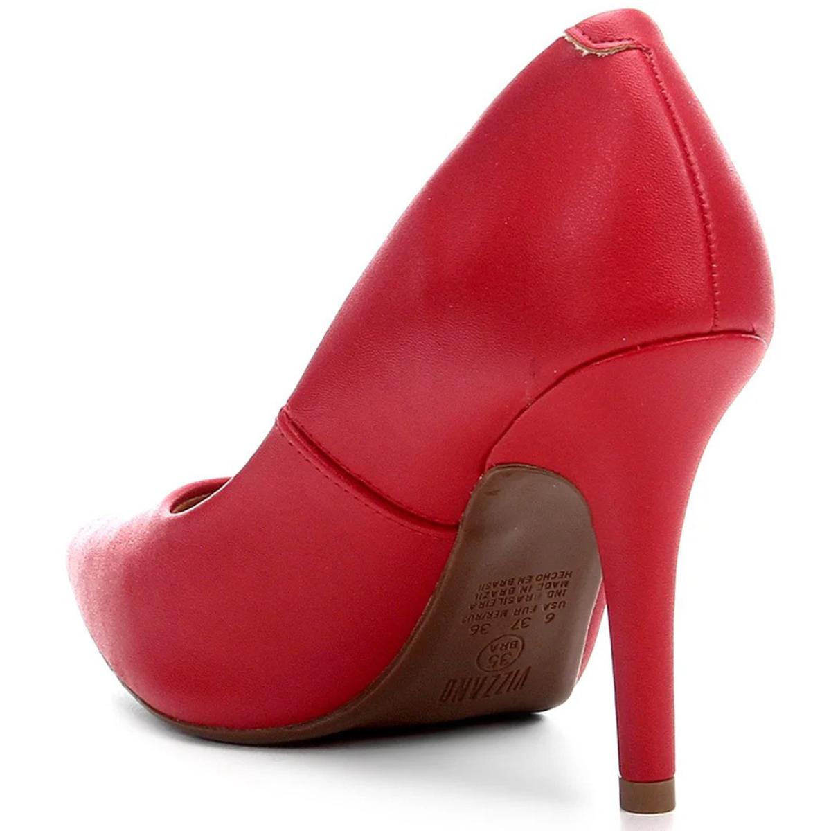 Scarpin Vizzano Salto Alto Bico Fino Fosco - Vermelho