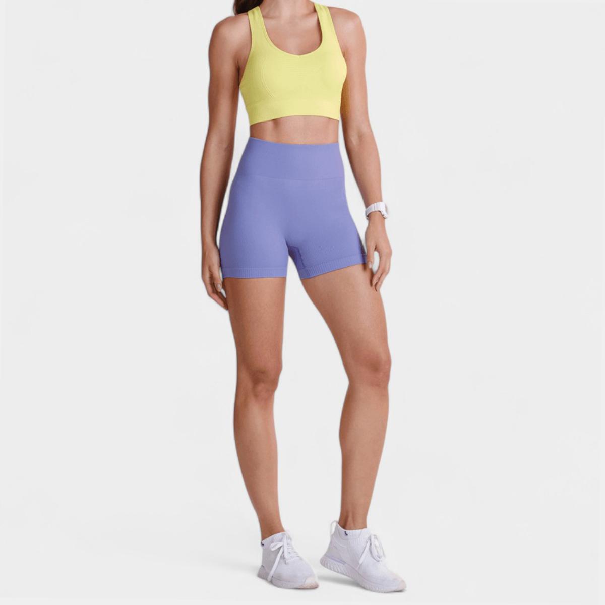 Shorts sem costura canelado com cós alto e anatômico que modela a silhueta e proporciona conforto durante a atividade, enquanto a borda de silicone garante que ele não saia do lugar.