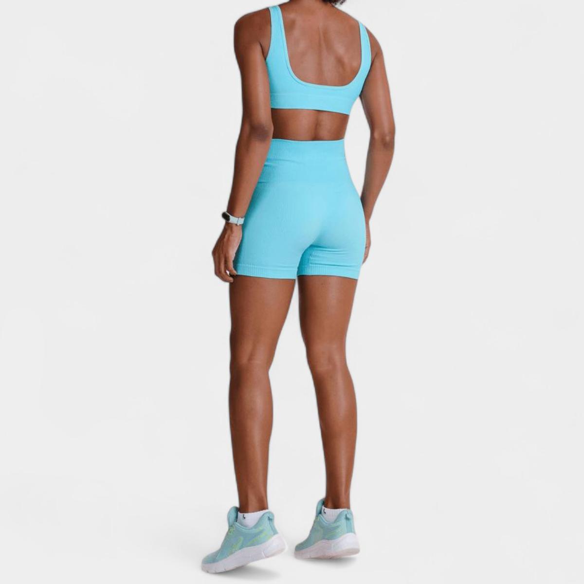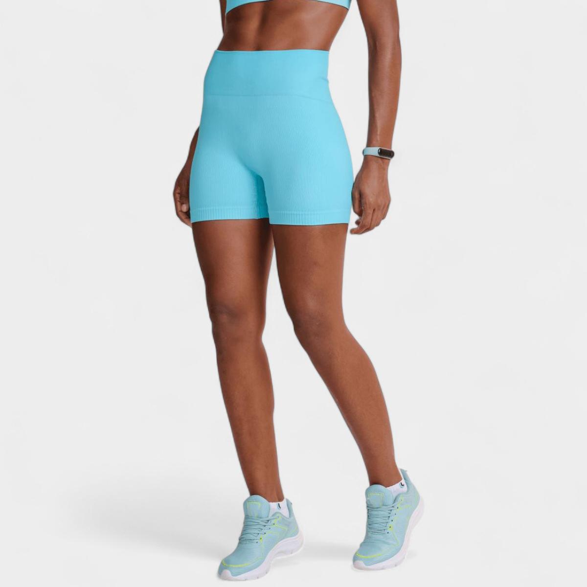 Shorts sem costura canelado com cós alto e anatômico que modela a silhueta e proporciona conforto durante a atividade, enquanto a borda de silicone garante que ele não saia do lugar.