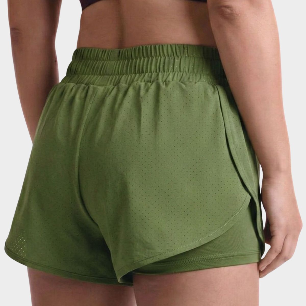 Shorts com duas camadas: suporte e leveza para treinos de impacto.