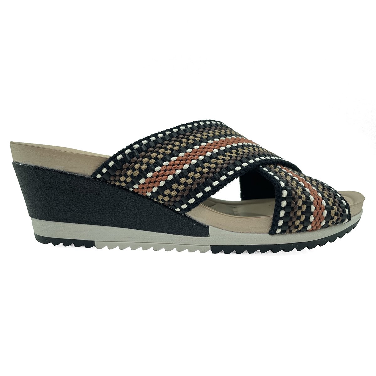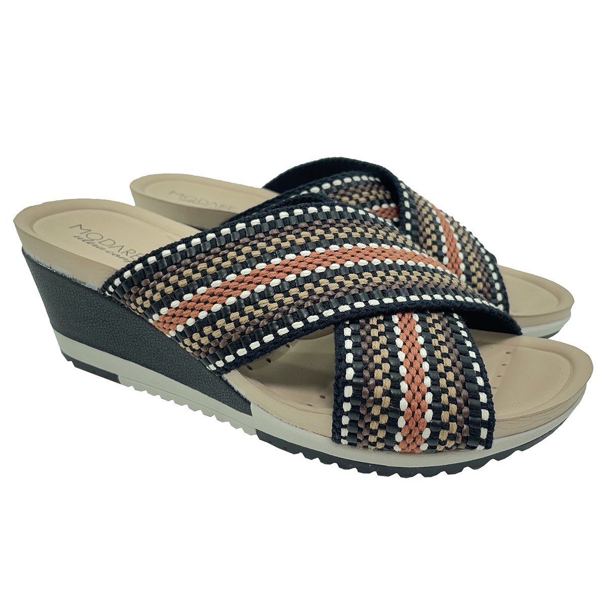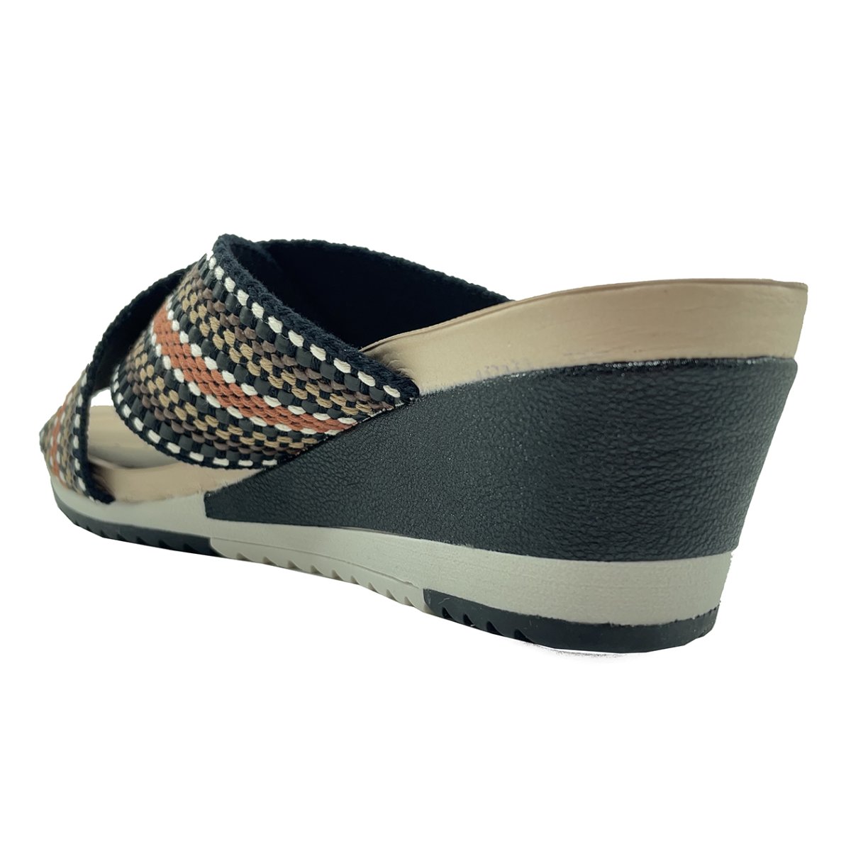 Nome:Tamanco Anabela Modare Tira Cruzada Natural - Preto e Branco