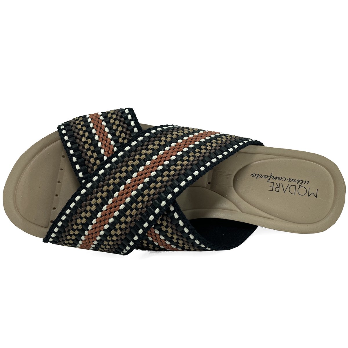 Tamanco Anabela Modare Tira Cruzada Natural - Preto e Branco