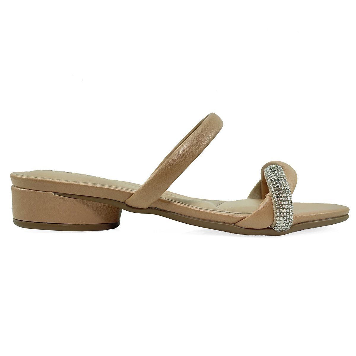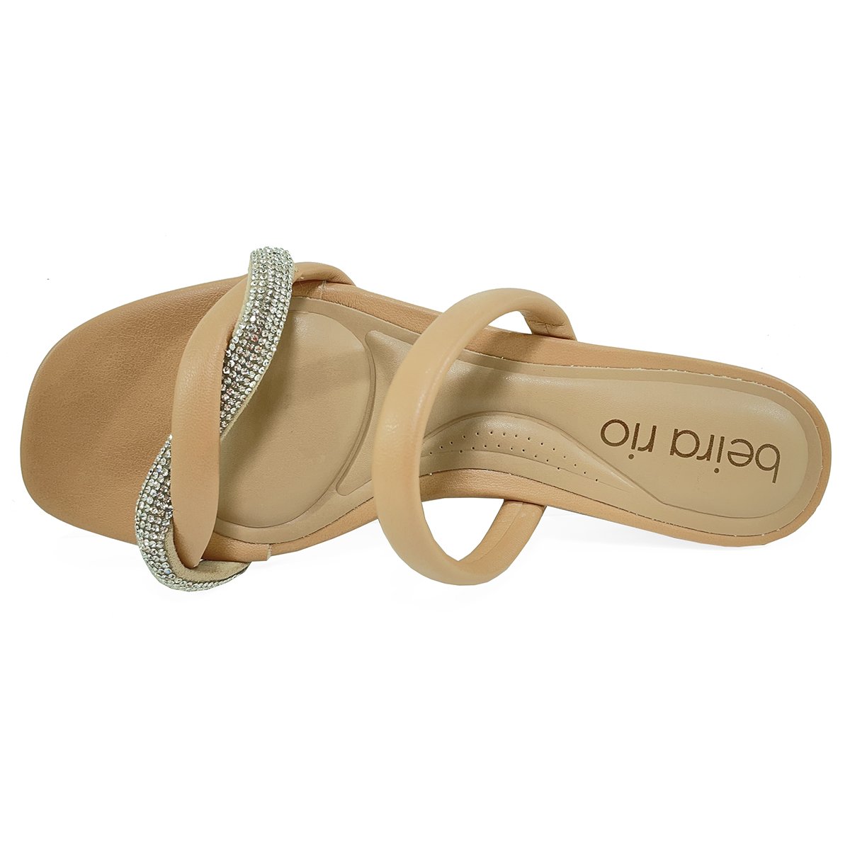 Tamanco Beira Rio Strass Salto Baixo - Nude