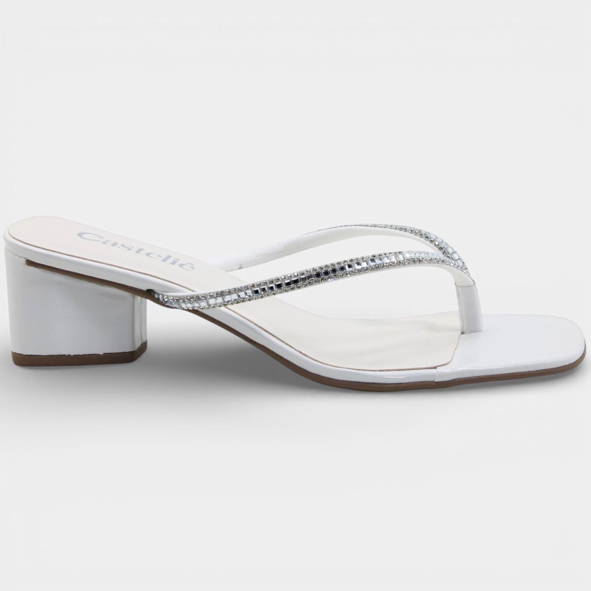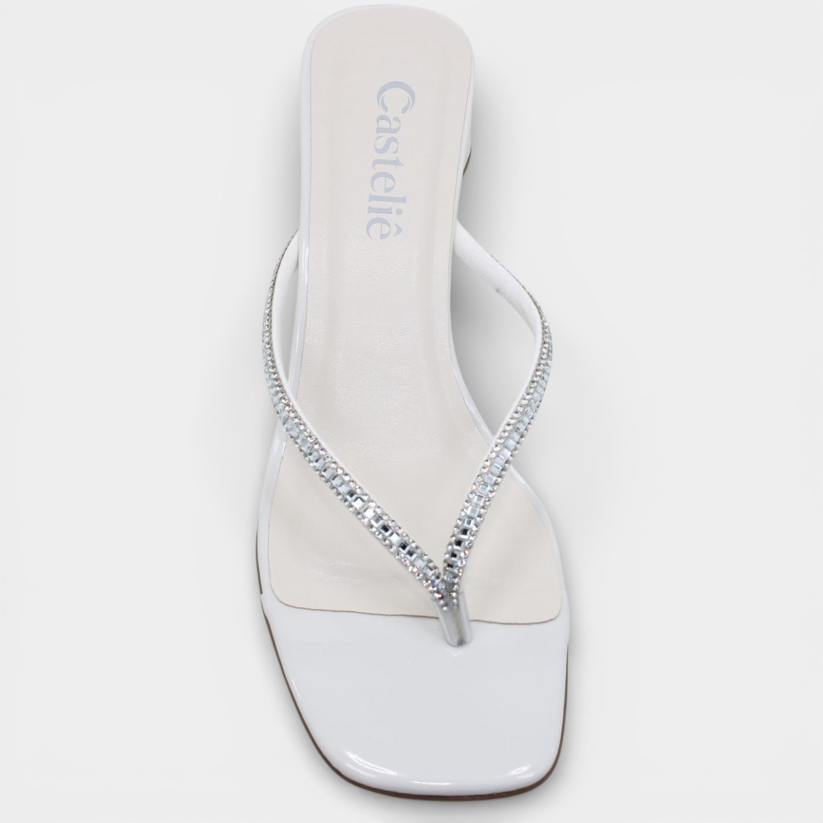 Tamanco Casteliê Verniz Strass Salto Bloco Feminino - Off White