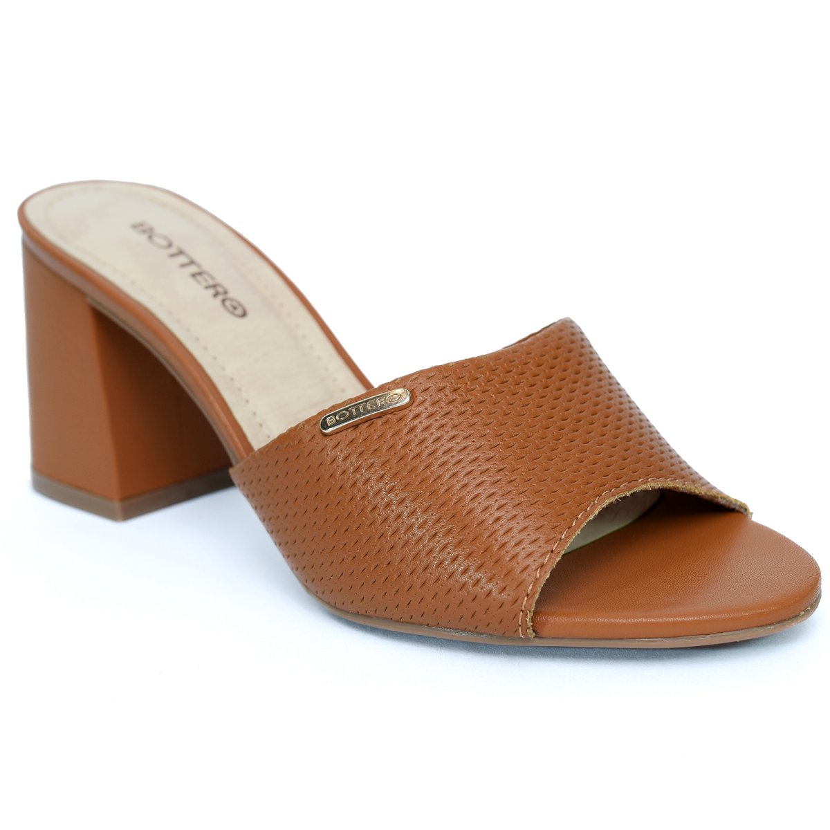 Tamanco Couro Bottero Salto Bloco Feminino - Caramelo