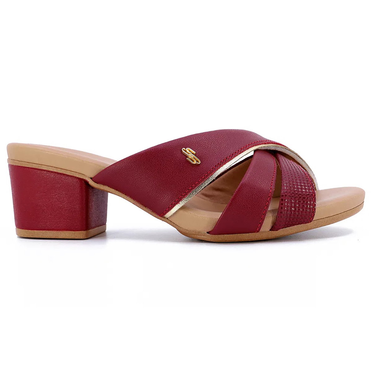 Tamanco Usaflex Salto Bloco Tiras Cruzadas - Vermelho Escuro