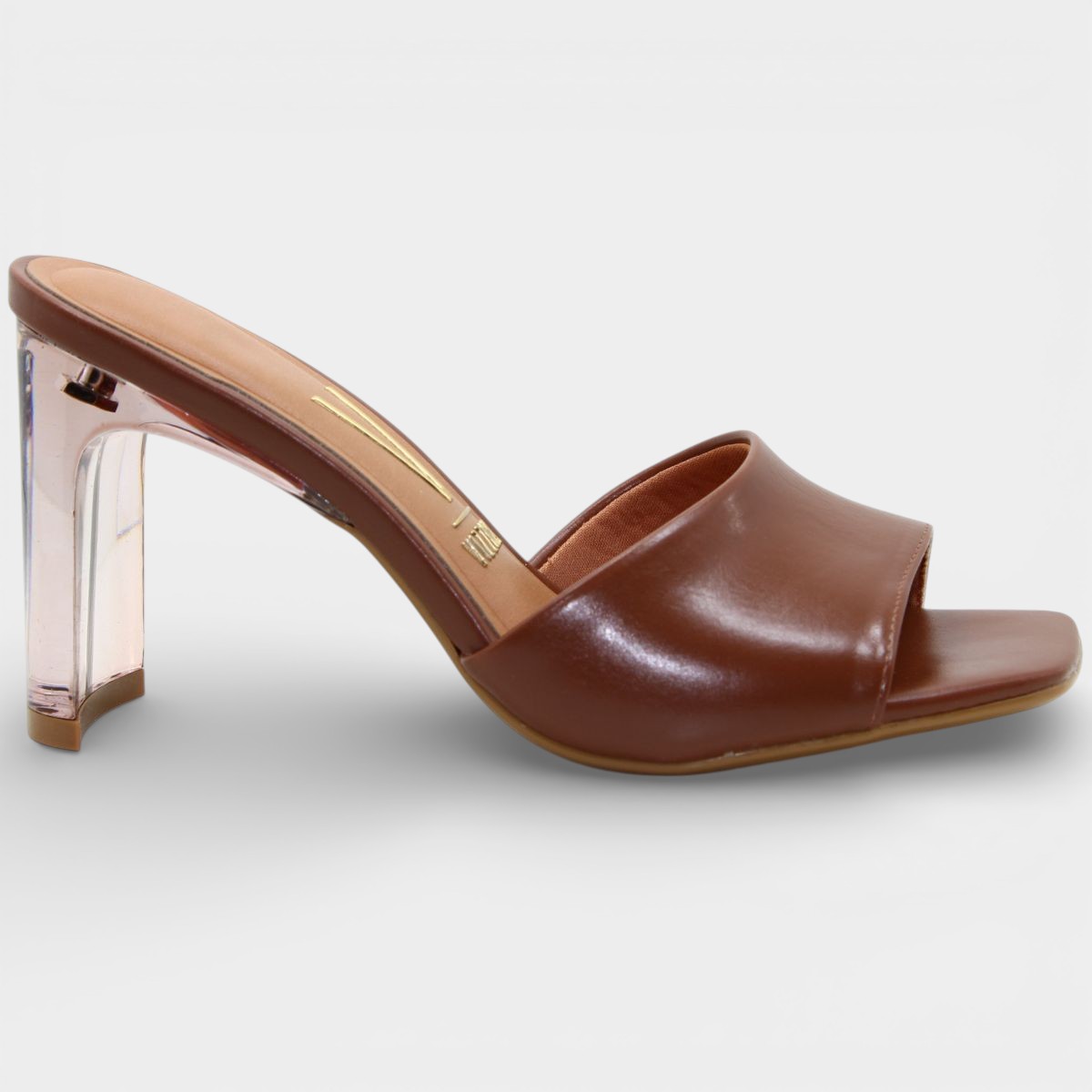 Nome:Tamanco Vizzano Salto Acrílico Feminina - Marrom Claro