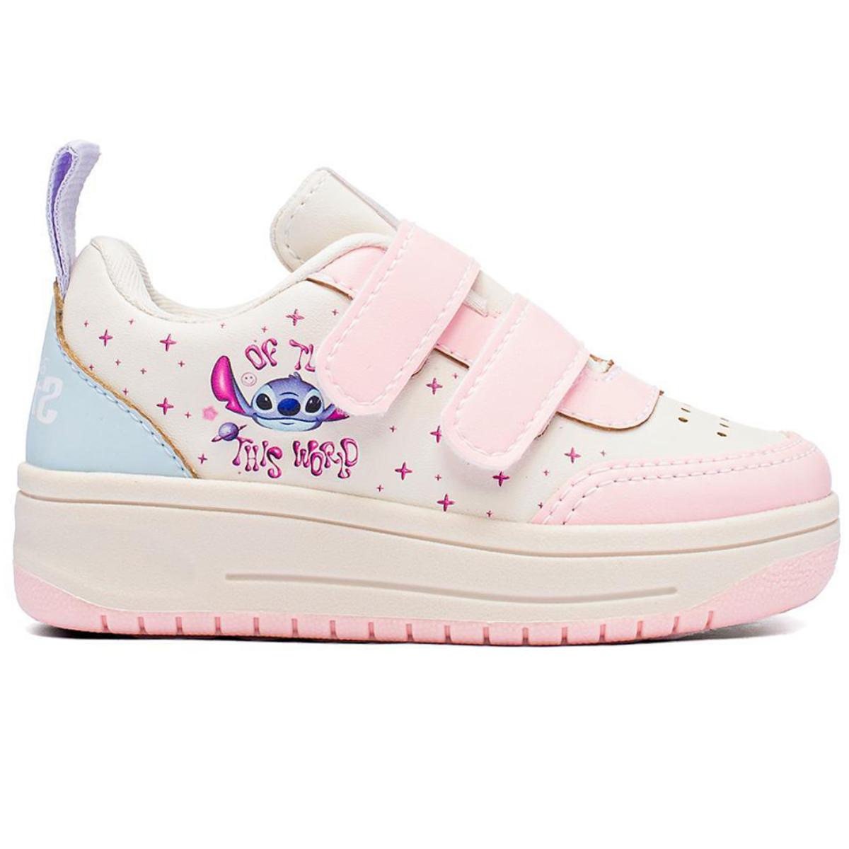 Tênis Infantil Disney Stitch Velcro Menina - Branco e Azul