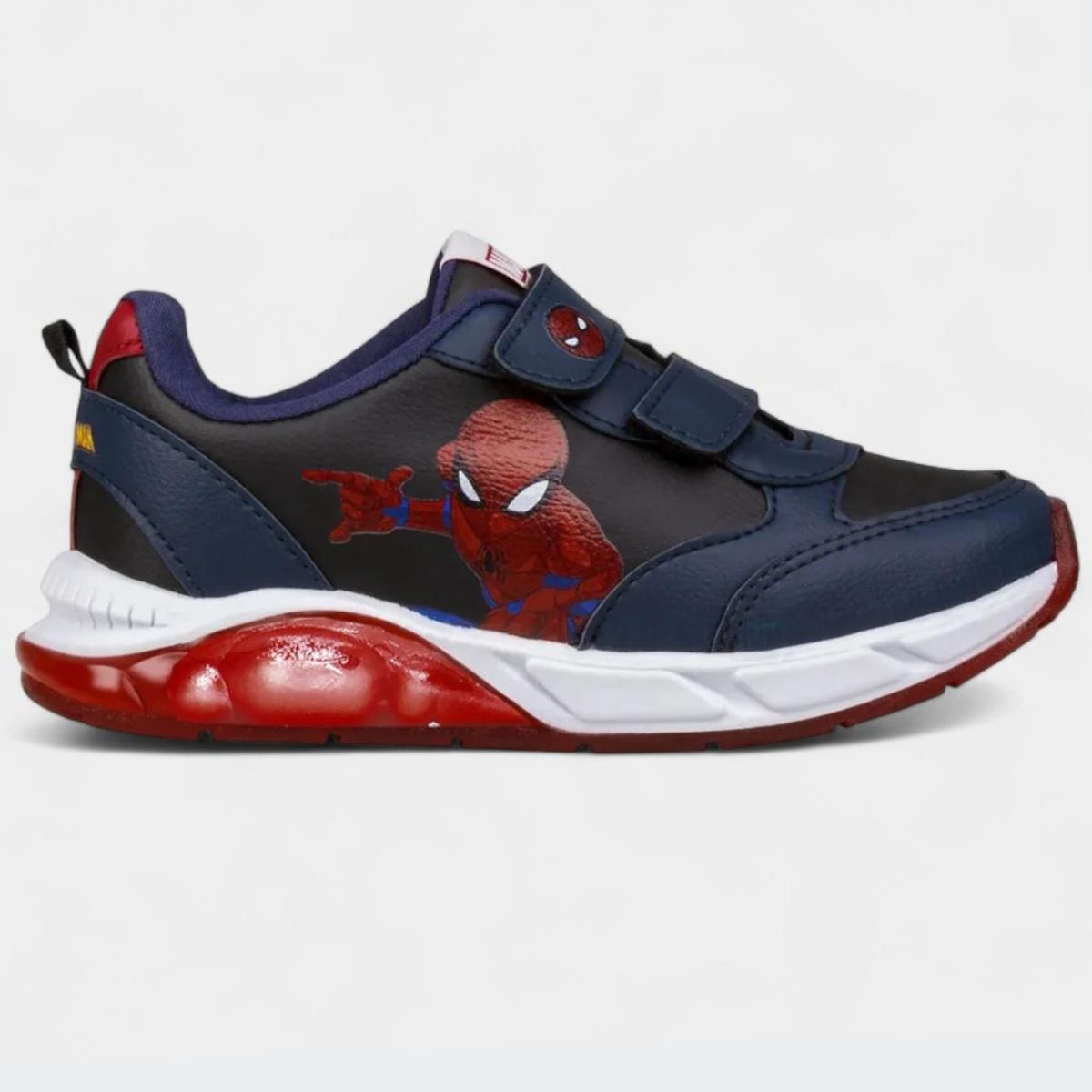 Tênis Infantil Marvel Homem Aranha Led Velcro Menino - Preto e Marinho