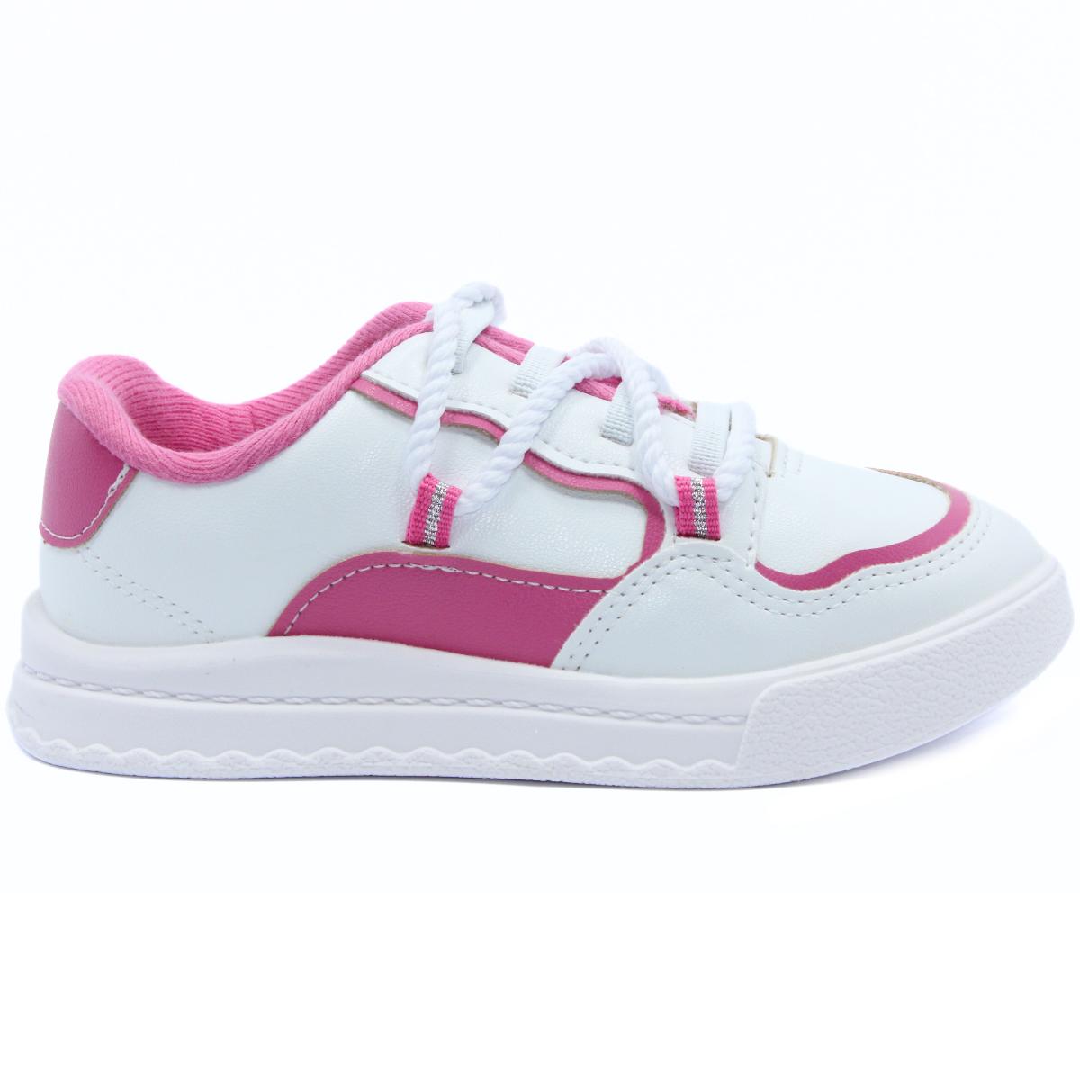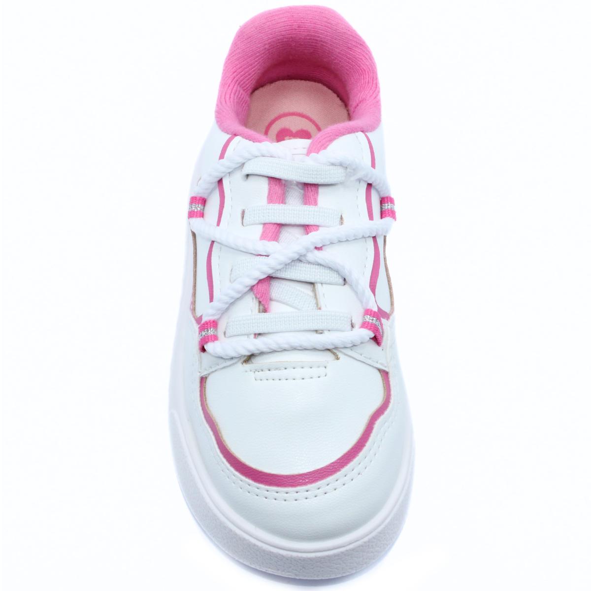 Tênis Infantil Molekinha Recortes Menina - Branco e Rosa