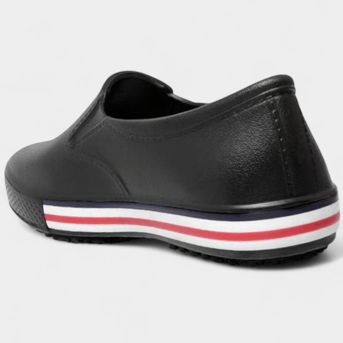 O seu solado é composto por uma borracha especial, cuja formulação é específica para evitar escorregamentos, podendo ser utilizado em pisos molhados com resíduos de detergente, assim como em pisos de aço com solução de glicerol, entre outros.
