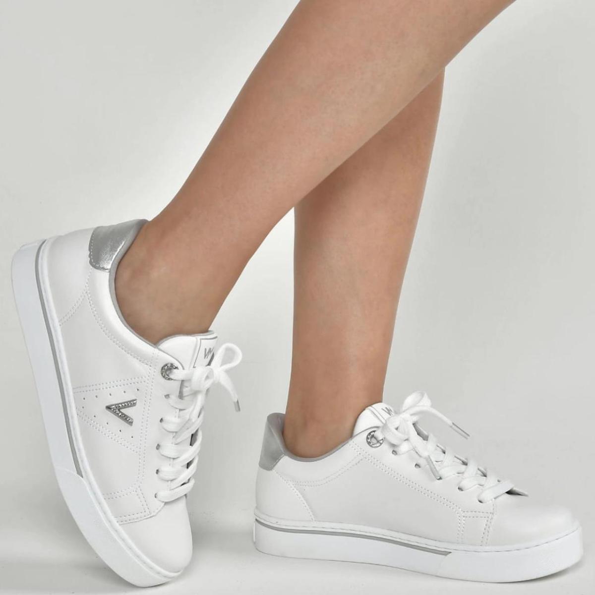 Tênis Via Marte Casual Detalhe Feminino - Branco e Prata