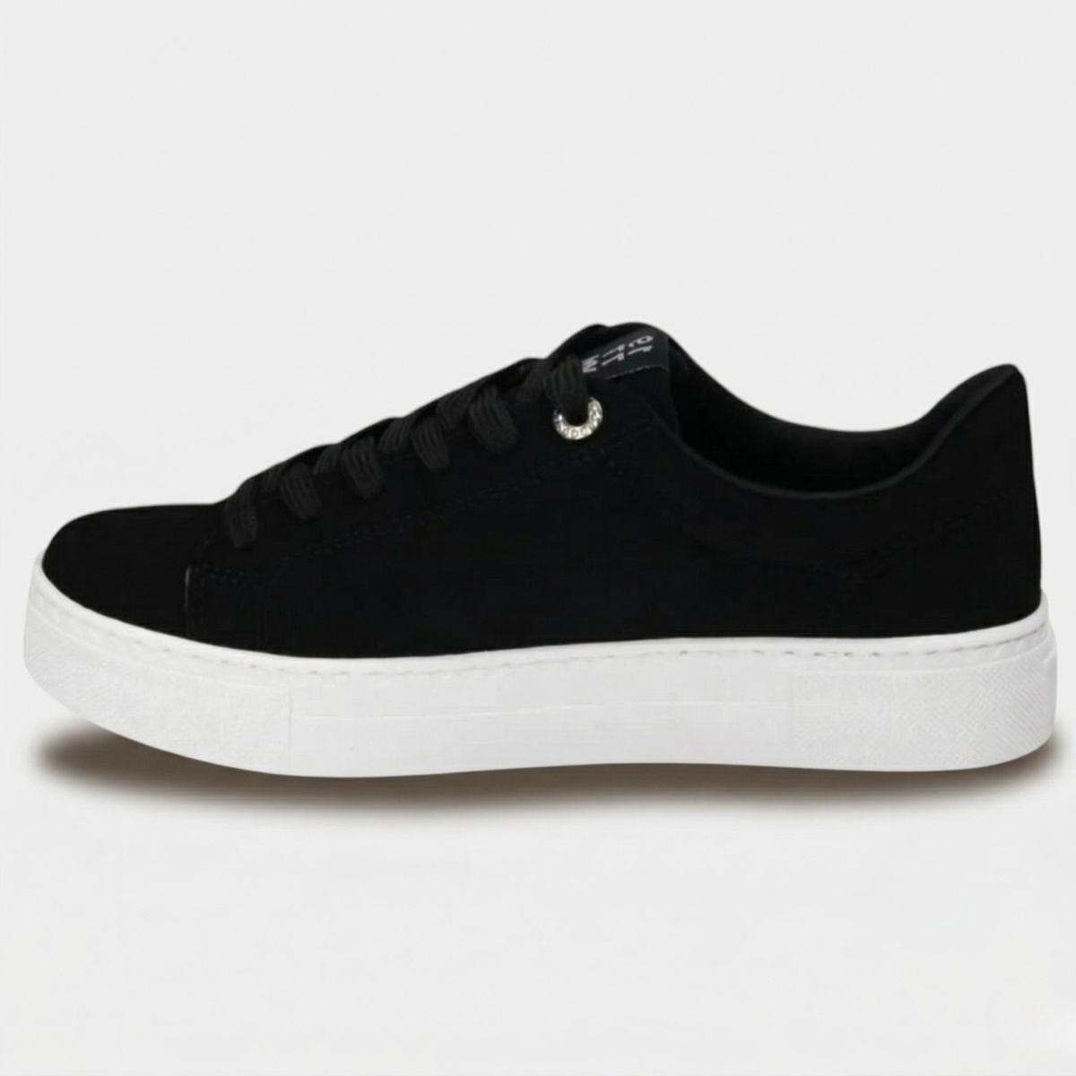 Nome:Tênis Via Marte Plataforma Detalhes Cravejados Feminino - Preto