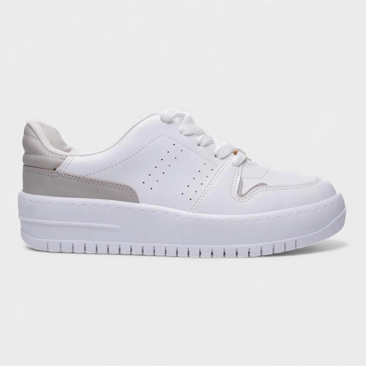 Tênis Vizzano Skatista Recortes Feminino - Branco e Cinza